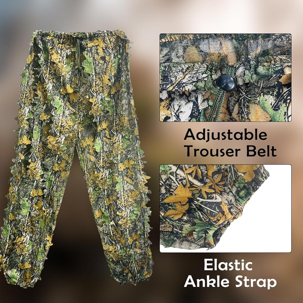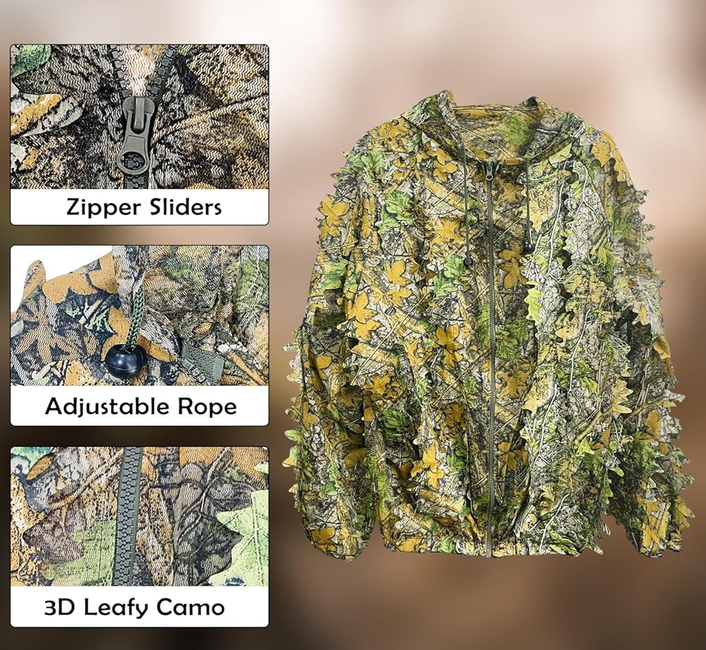 【أوراق بيونيك ثلاثية الأبعاد】 فتحات ثلاثية الأبعاد مموهة بأوراق الشجر تجعل الزي بأكمله أقرب إلى بيئة الغابات الخارجية، مما يجعل أنشطة الصيد الخاصة بك أكثر خفية وأقل احتمالية أن يتم اكتشافها عند الاختباء.