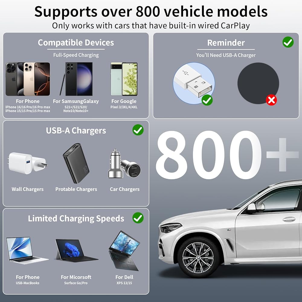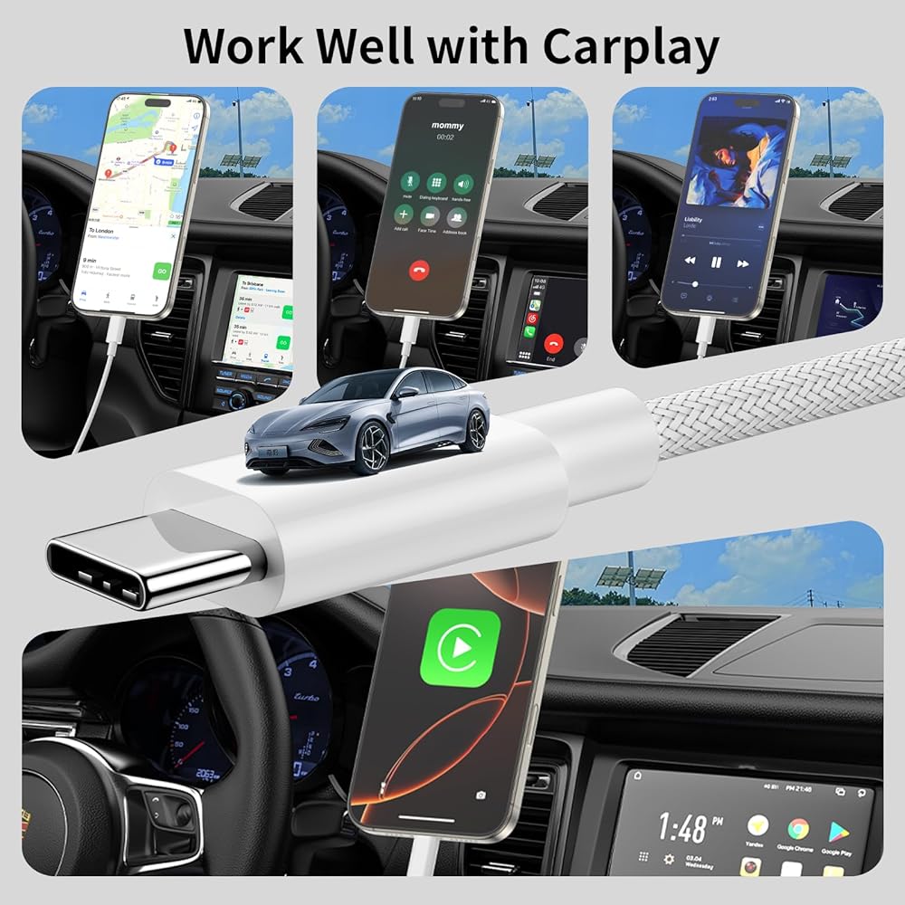 • 【iPhone 16/15 Car Carplay Cable】Specifically designed for in-car use, this iPhone 16/15 charging cable instantly activates Car Play when plugged into your device.This Carplay cable provides smooth playback and fast response when using the Carplay function.Whether you're playing music or using navigation, you'll experience optimal performance.