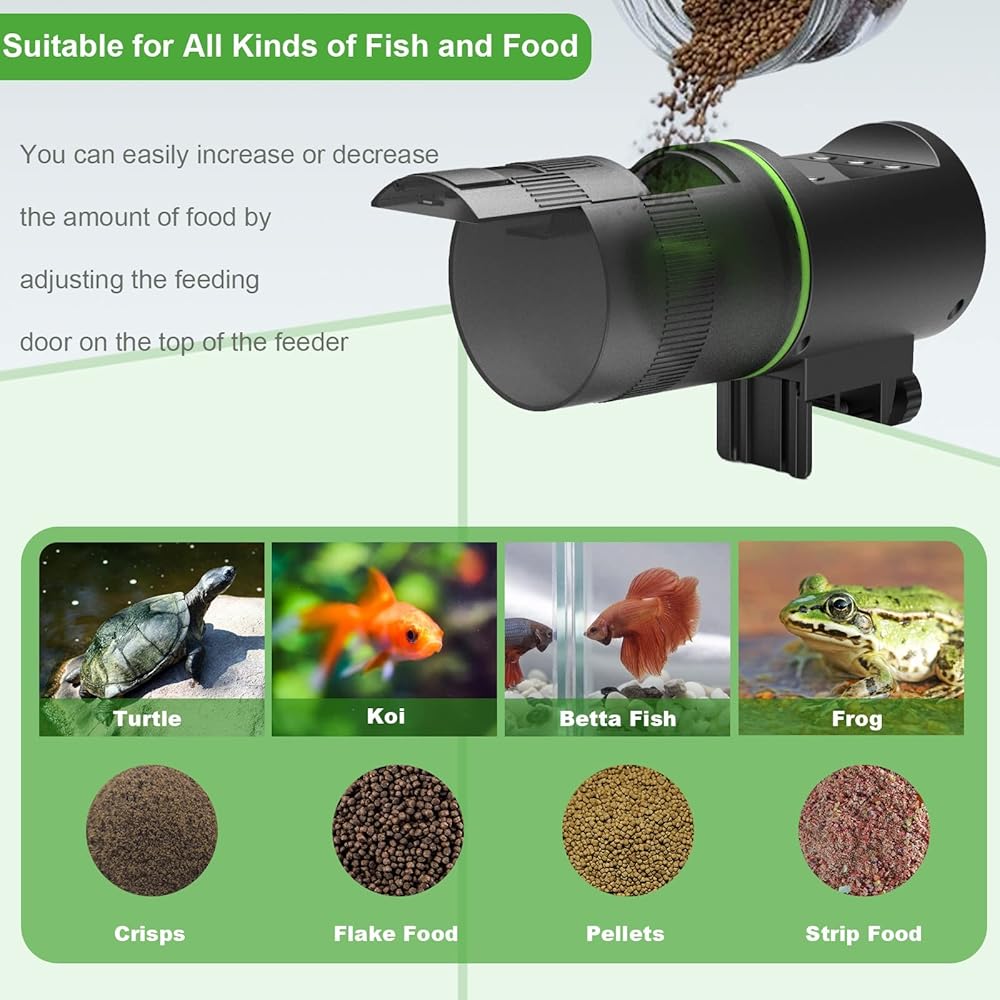 جهاز تغذية الأسماك الأوتوماتيكي مناسب لمحاربة الأسماك والضفادع والروبيان. يمكن استخدامها في خزانات المياه العذبة وخزانات المياه المالحة، على بعد 7 أو 14 يومًا من المنزل، لا تقلق بشأن موت الأسماك جوعًا