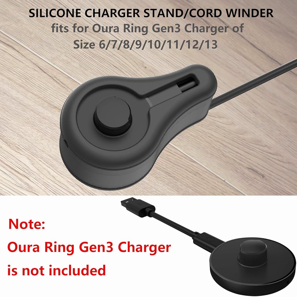 Silicone Charger Protector Compatible with Oura Ring Gen3, Stand Case Cover for Oura Ring Charger Size 6/7/8/9/10/11/12/13, Charing Dock Station Holder and USB-C Cable Storage Charger Organizer