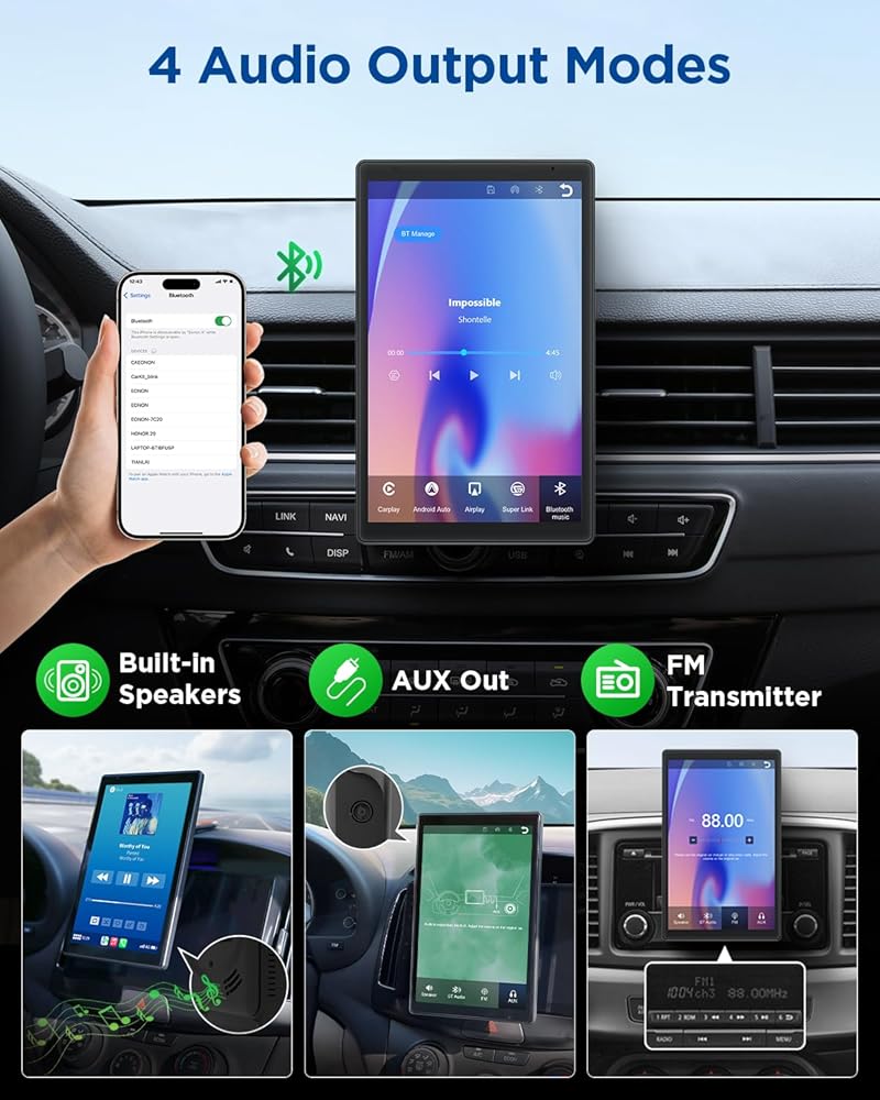 【أوضاع الشاشة المزدوجة لتوفير الراحة القصوى】يوفر راديو السيارة المحمول Eonon P5 وضعين للشاشة متعددي الاستخدامات: أفقي وصورة. باستخدام مفتاح بسيط، يمكنك تكييف الشاشة حسب احتياجاتك. استخدم الوضع الرأسي للحصول على عرض أطول وأكثر تفصيلاً - وهو مثالي للتنقل ورؤية المزيد أثناء التنقل. عندما يحين وقت الاسترخاء، قم بالتبديل إلى الوضع الأفقي للحصول على تجربة مشاهدة فيديو غامرة. ارفع مستوى رحلة القيادة الخاصة بك مع مرونة أوضاع الشاشة المزدوجة!