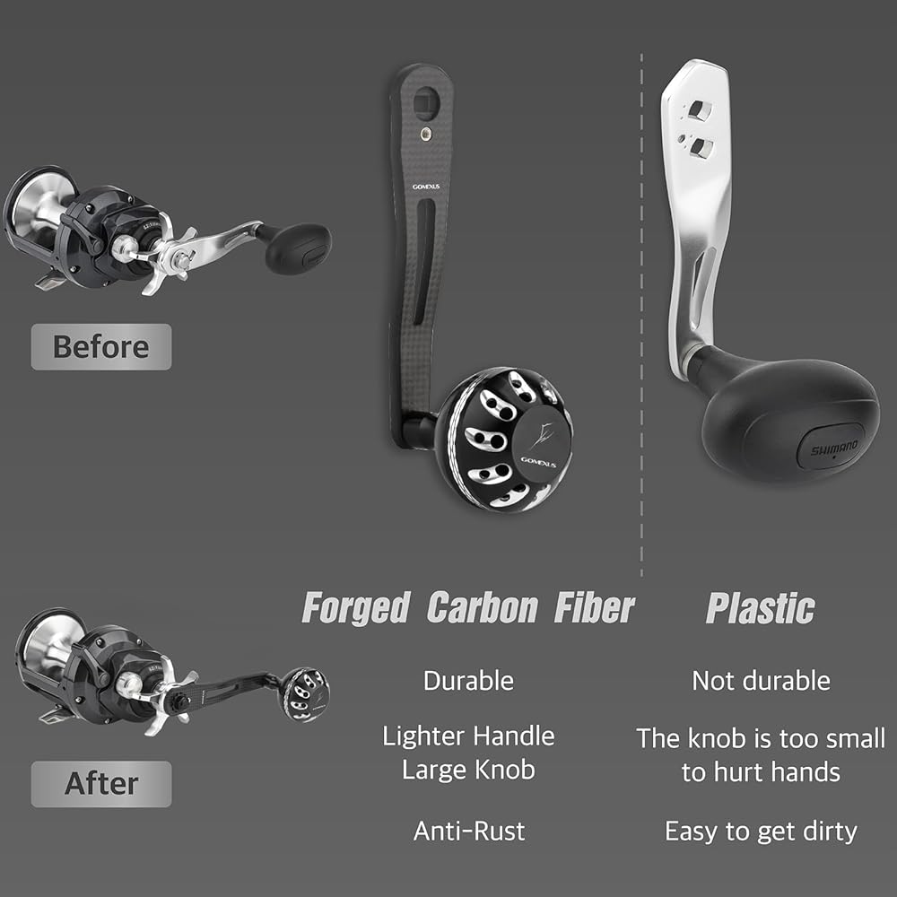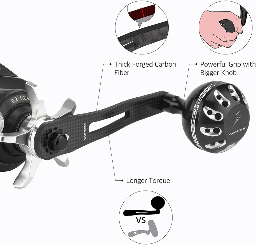 [Prerium Material] The power handle is made by high-quality Carbon Fiber.Light, strong and resistant to seawater corrosion.Handle uses Japanese NMB bearings
