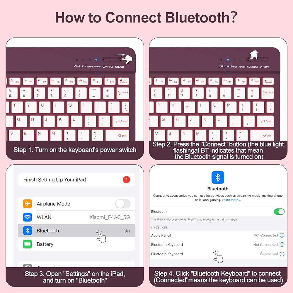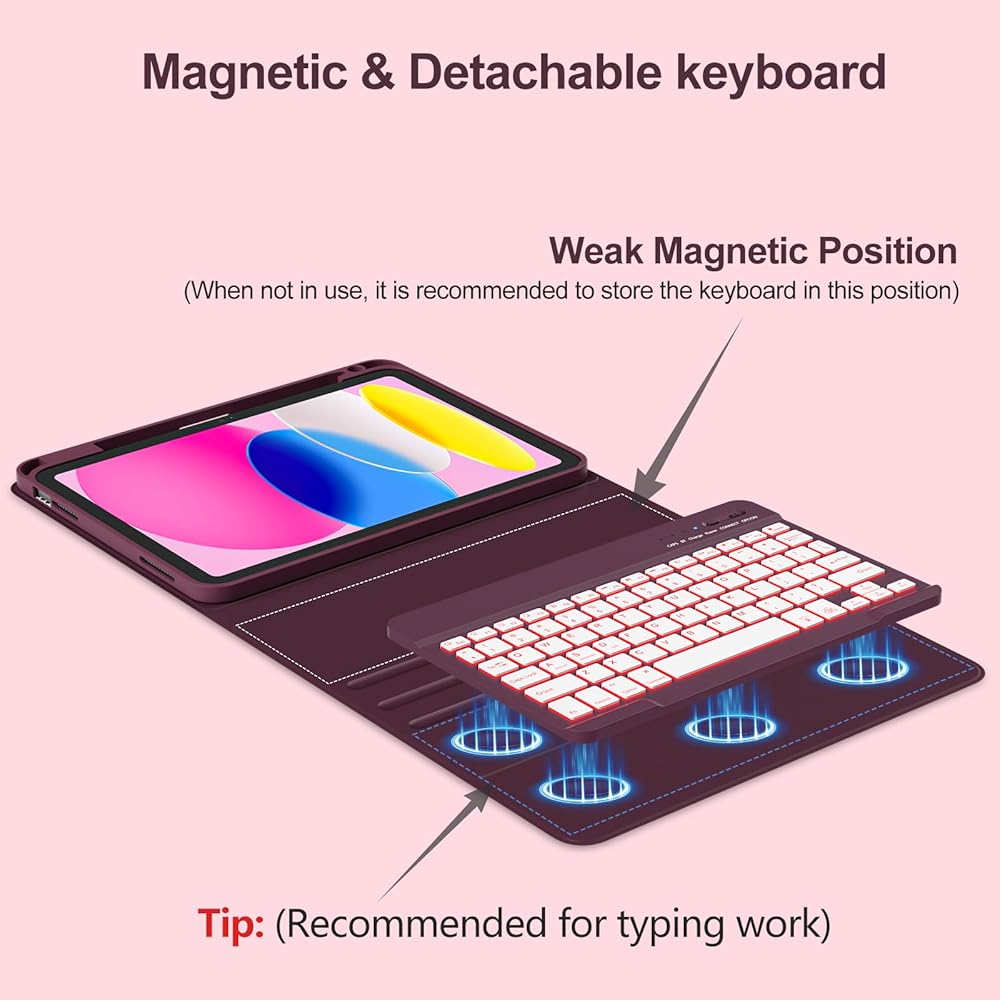 [لوحة مفاتيح مغناطيسية وقابلة للفصل وقابلة لإعادة الشحن]: تقنية البلوتوث 5.0 لجراب iPad الجيل العاشر مع لوحة المفاتيح تعمل على تحسين سرعة وجودة نقل الاتصال بشكل كبير، دون أي تأخير، مما يزيد بشكل فعال من كفاءة الكتابة الخاصة بك عن طريق الجيل العاشر من teclado iPad. مزود بمغناطيس لوحة مفاتيح قابلة للفصل وقابلة لإعادة الشحن، متوافقة مع أنظمة IOS وWindows وAndroid، مما يوفر لك مجموعة متنوعة من الاستخدامات