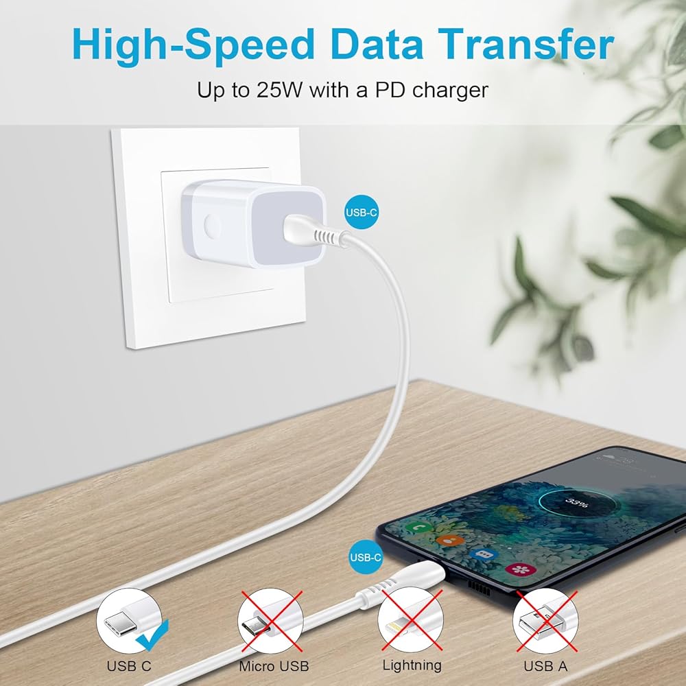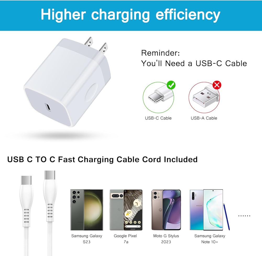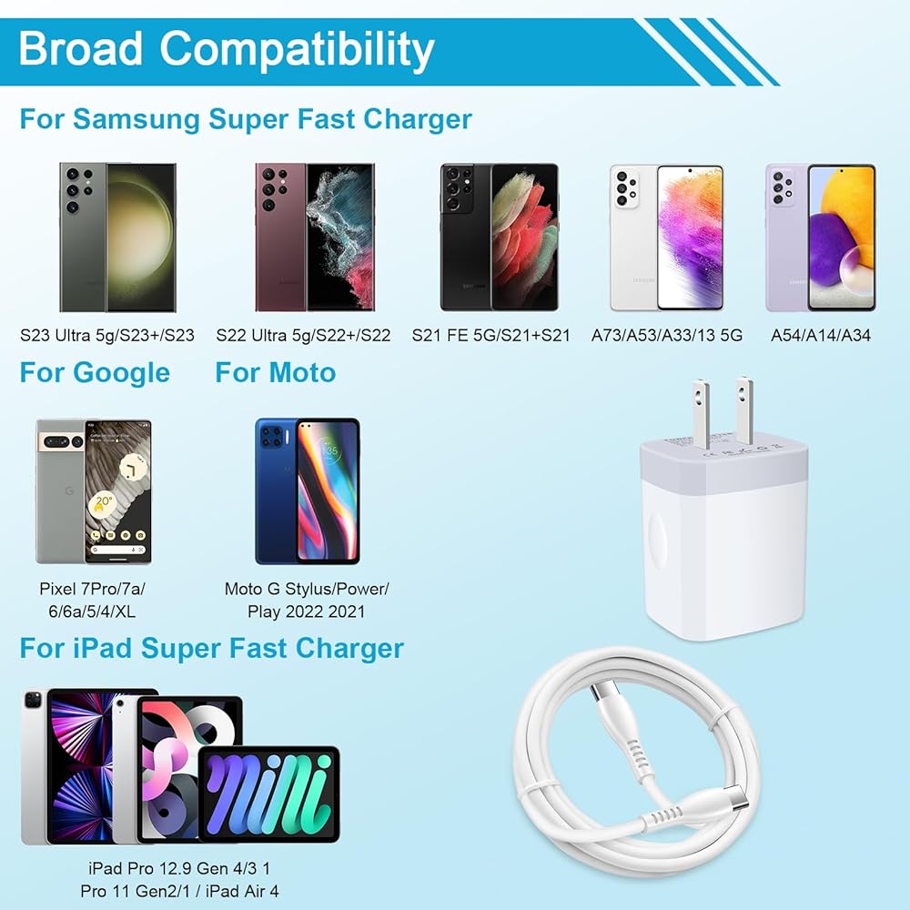 【مجموعة شاحن حائط سريع عالمي من النوع C】مجموعة كابل الشحن السريع لشاحن سامسونج جالاكسي s23 الترا 5 جرام من النوع c متوافقة مع سامسونج جالاكسي S23/S23+/S23 Ultra/S22/S22+/S22 Ultra/S21/S21 +/S21 Ultra/S20 /S20+/S20 الترا/S20 FE/S10/S9/S8,A14/A54/A34/A33/A13/A73/A53/A03S,Z Flip 4/Z Fold 4 5g,Google Pixel 7Pro/7/6/6a/5/5a/4/3 وMoto G Stylus 2023 وiPad Pro/iPad Air/MacBook Air والمزيد من أجهزة USB C.