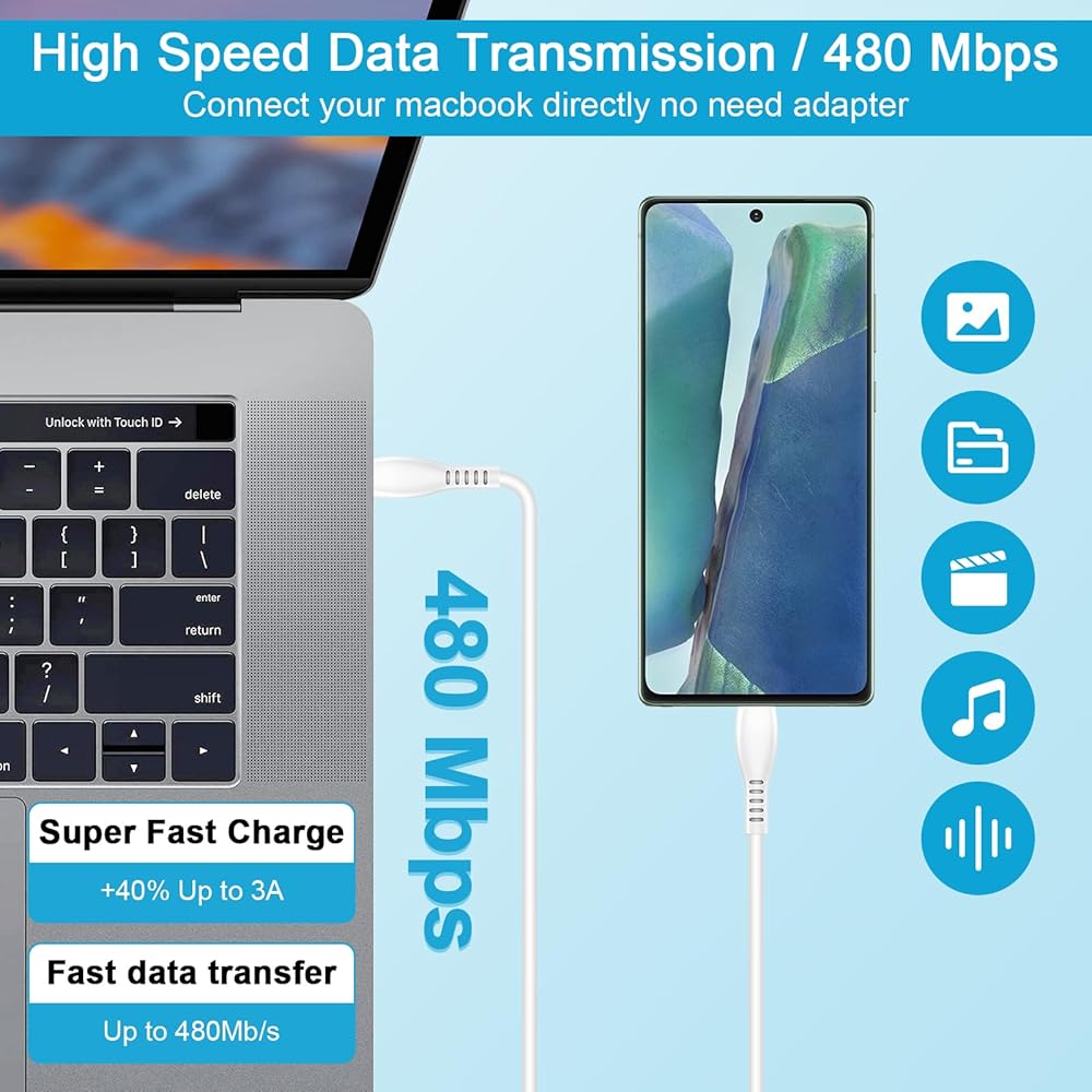 【كتلة شحن كابل شاحن 6FT C】تم تجهيز شاحن Galaxy A54 20W فائق السرعة من النوع c بكابل أطول من النوع C إلى C بطول 6FT، مما يوفر تصميمًا قابلاً للعكس سهل الاستخدام ومسافة شحن أطول، وشحن سريع وسرعة نقل بيانات تصل إلى 480 ميجابت في الثانية .طول 6 أقدام خالٍ من التشابك مناسب للاستخدام أثناء الشحن والمزامنة في المنزل/المكتب/السفر في السرير وغرف الفنادق والمزيد.