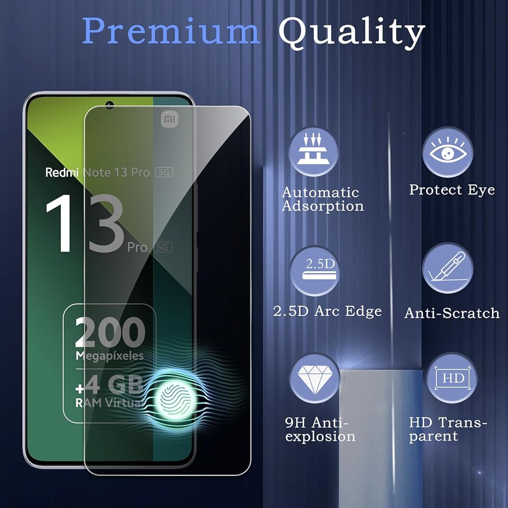 [الطراز المتوافق] تم تصميم حجم واقي الشاشة خصيصًا لهاتف Xiaomi Redmi Note 13 Pro 5G، ويتضمن عبوتين من واقيات شاشة الخصوصية + عبوتين من واقيات عدسات الكاميرا المقوى ومجموعة التنظيف.