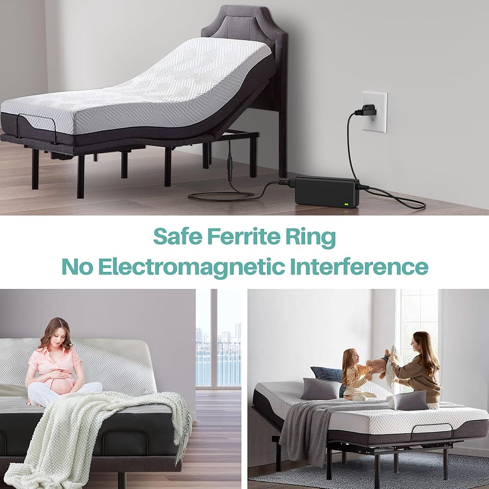 شاحن مع شهادة UL: محول تيار متردد لسرير Lucid L150 L300 L600 القابل للتعديل مع قائمة UL، مزود الطاقة يبني وظائف حماية السلامة، مزيد من الأمان أثناء الشحن من أجل Tempurpedic Ergo/تمديد/سهولة التعديل. قواعد