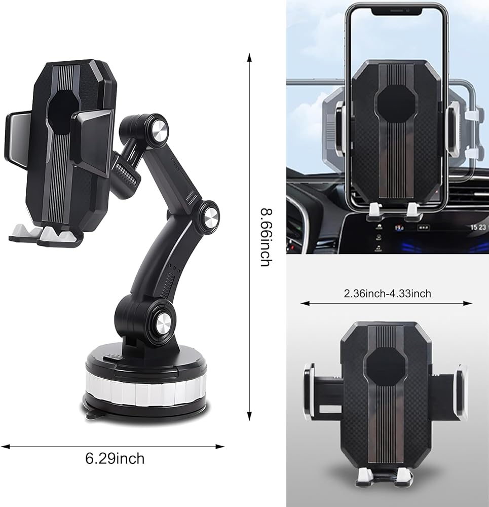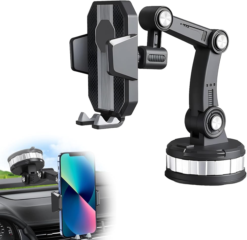قطعة واحدة من حامل الهاتف الخلوي للسيارة، حامل الزجاج الأمامي بقاعدة شفط كبيرة قابلة للدوران 360 درجة، دعامة تثبيت متعددة الوظائف قابلة للسحب لهاتف iPhone، ملحق سيارة عالمي (أسود)
