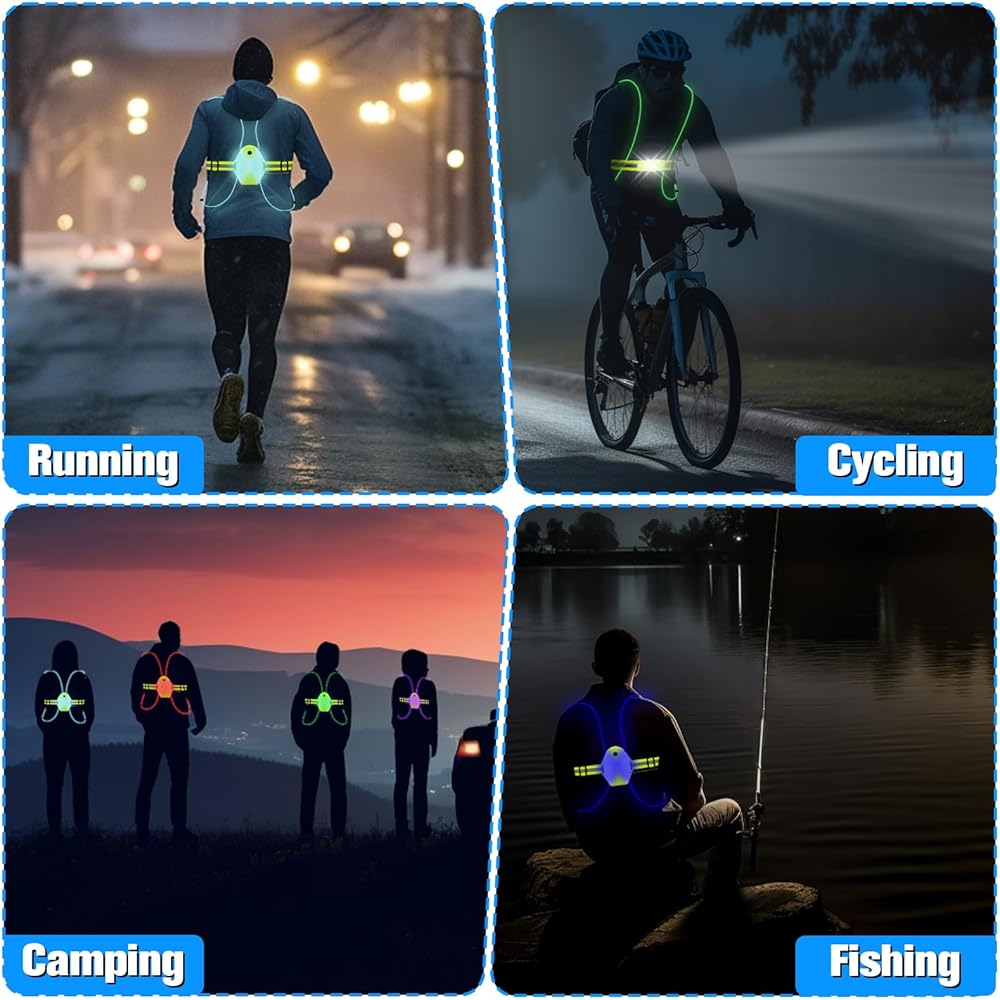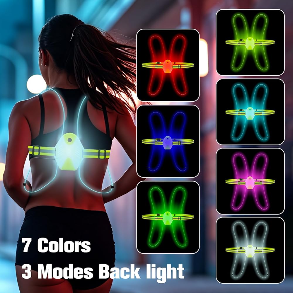 رؤية عالية وخيارات ألوان متعددة - هذه السترة العاكسة مزودة بمصابيح LED متعددة الألوان فائقة السطوع، مما يوفر إضاءة 360 درجة. اختر من بين 3 أوضاع إضاءة وقم بالتبديل بين 7 ألوان ثابتة و3 أوضاع RGB ملفتة للنظر. صُممت سترة الجري هذه مع وضع العلوم البصرية في الاعتبار، وهي تضمن رؤيتك وتنبيه السائقين. إكسسوارات الجري المثالية للنساء والرجال، مثالية للمشي والجري ولعب الفريسبي المثالي وركوب الخيل أو حتى ركوب الدراجات النارية.