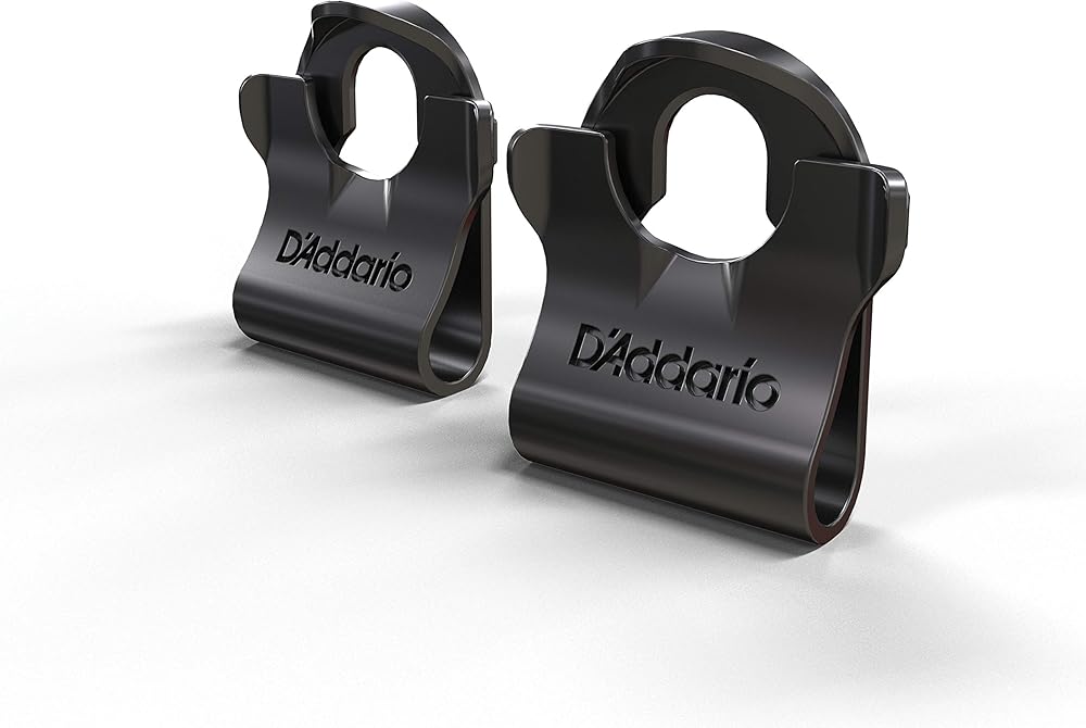 قفل حزام الجيتار بقفل مزدوج من D'Addario - مجموعة أقفال حزام الجيتار - حماية جهازك بدون تعديلات أو أجهزة - تأمين الكابلات - سهل التركيب - زوج واحد، أسود