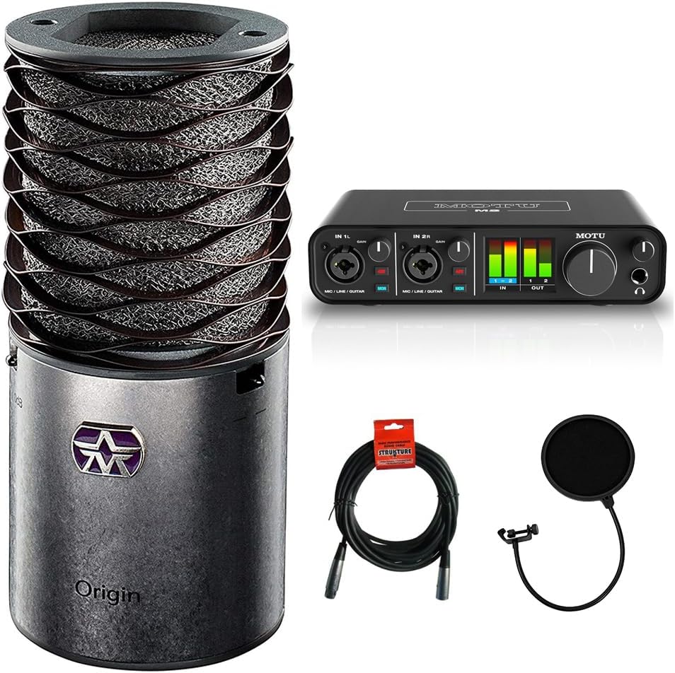 Kellards Aston Microphones Origin Large Diaphragm Cardioid Condenser Microphone Bundle with Motu M2 2x2 USB Audio Interface, Pop Filter and XLR- XLR Cable
