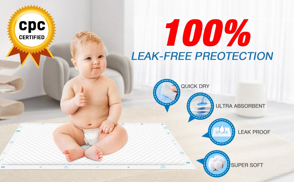 CPC CERTIFIED: the baby changing pads are meticulously crafted for baby; No harsh chemicals, outer cover made from ultra-soft materials, these diapers are gentle on your baby's delicate skin, preventing irritation and ensuring maximum comfort