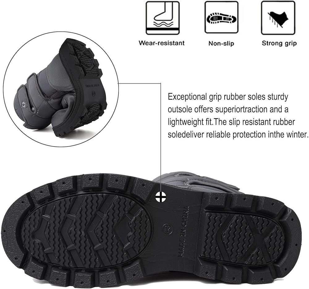 【سطح مقاوم للماء】: مقدمة الحذاء مصنوعة من مادة مقاومة للماء عالية الجودة، تمنع دخول الثلج والماء إلى الحذاء بحيث تحافظ على قدميك دافئة وجافة طوال اليوم وسهلة التنظيف بقطعة قماش.
