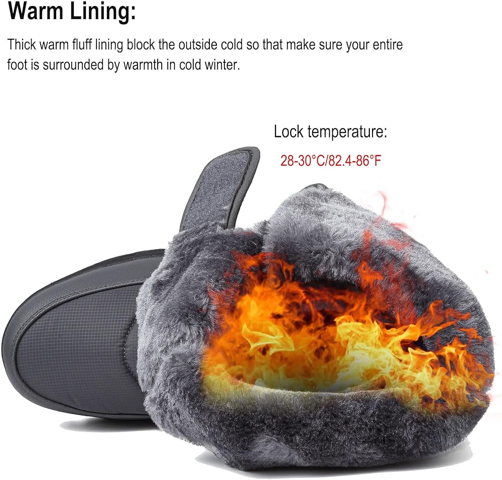 【بطانة دافئة】: نعل داخلي مبطن بالصوف الناعم وقابل للفصل. بطانة سميكة دافئة من الزغب تمنع البرد الخارجي بحيث تأكد من أن قدمك بأكملها محاطة بالدفء في الشتاء البارد. النعل القابل للفصل سهل التنظيف.