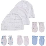 طقم قبعة وقفاز عضوي من القطن الناعم للأطفال حديثي الولادة، قبعات مشمسة للمستشفى للأطفال الأولاد والبنات (0-6 أشهر) باللون الأبيض