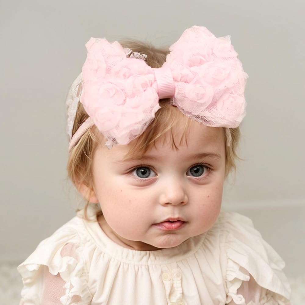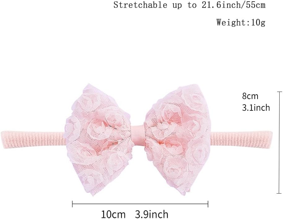 Stretchable Size: The length of the toddler tulle bow headband is 15-20 inches/38-52cm, suitable for 0-3 years old babies, soft and stretchy enough, designed to fit newborns, infants, and toddlers