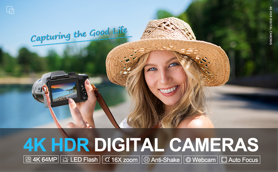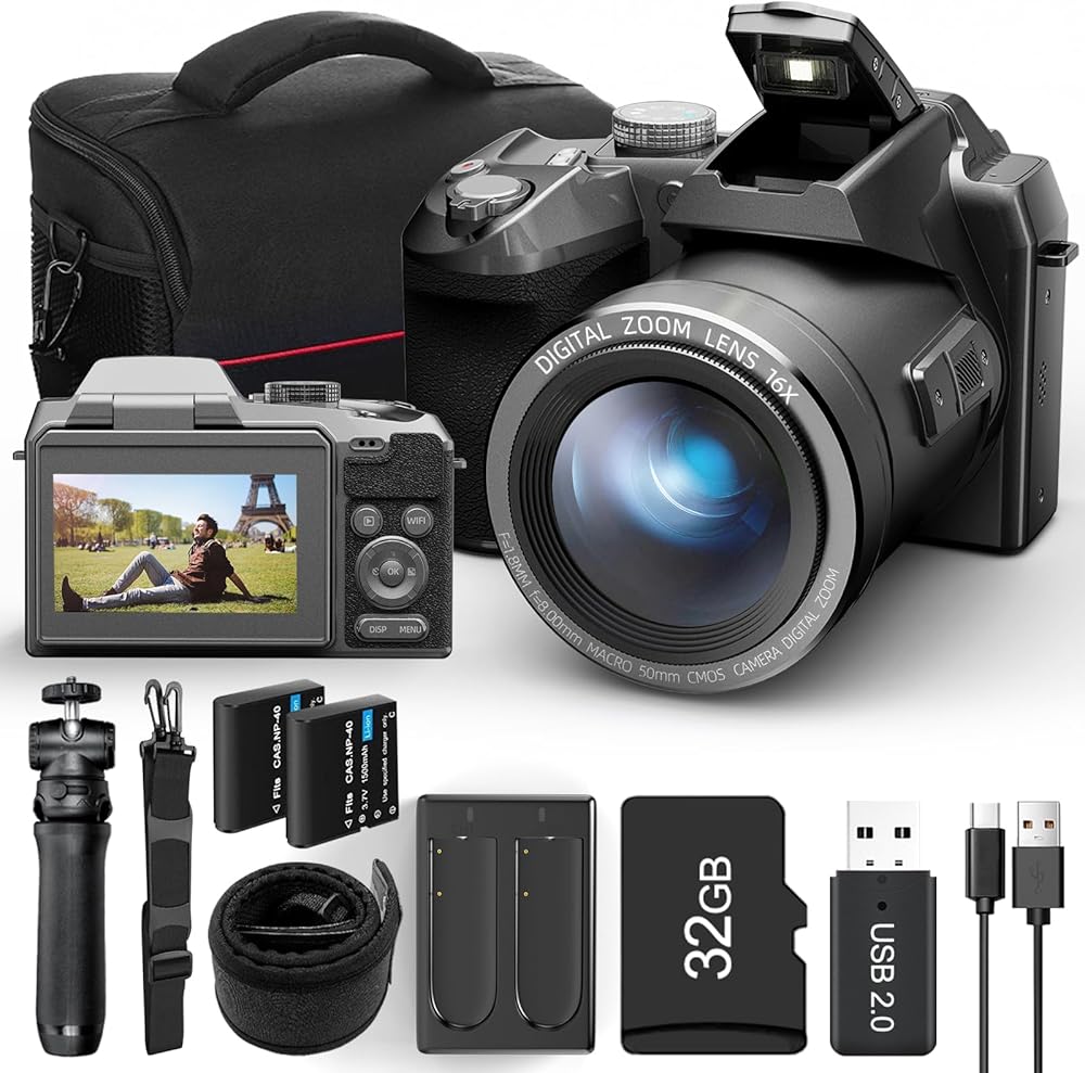 كاميرات رقمية بدقة 64 ميجابكسل للتركيز التلقائي للتصوير الفوتوغرافي، وكاميرا تسجيل فيديو بدقة 4K لليوتيوب مع حزام وحامل ثلاثي القوائم، وكاميرا سفر مدمجة مقاومة للاهتزاز 16X مع تحكم في WiFi والتطبيقات، وبطاقة SD، وبطاريتين (S200)