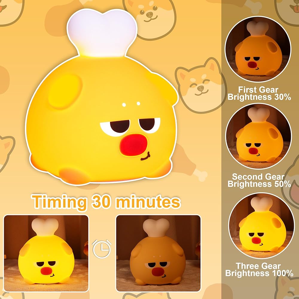 لطيف الكلب ضوء الليل، سيليكون الكلب الحضانة مصباح القابلة لإعادة الشحن مصباح السرير 3 مستويات السطوع، 30 دقيقة الموقت ضوء اللمس لغرف النوم، عيد الميلاد هدية عيد ميلاد للبنين والبنات