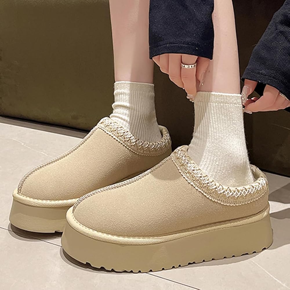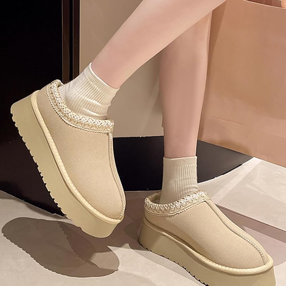 sheepskin slippers platform slippers are equipped with non-slip soles, providing excellent traction and stability on smooth surfaces, ensuring your safety while walking.