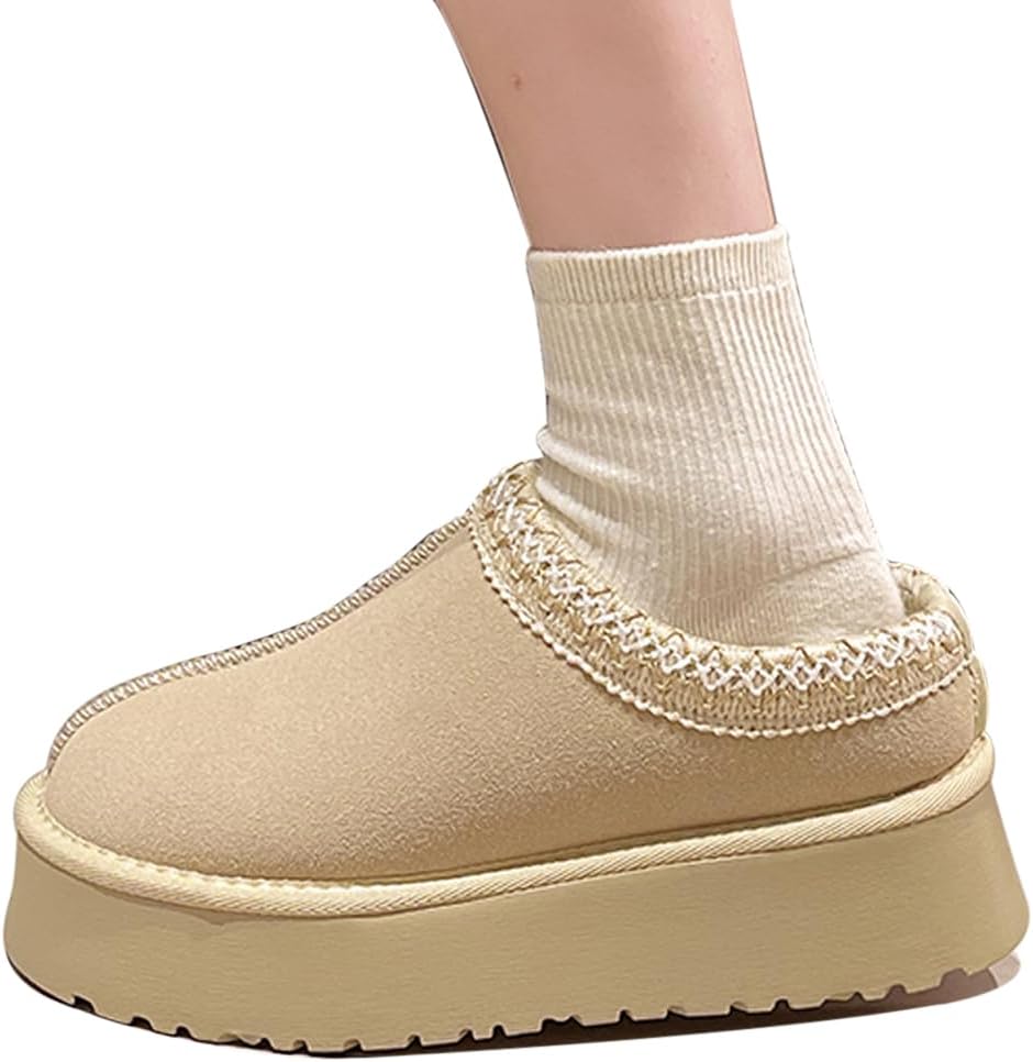 Harssidanzar Slippers For Women,Winter Fleece Lined Boots Anti-Slip Snow Platform Slippers Winter House Shoes Indoor and Outdoor KL507US