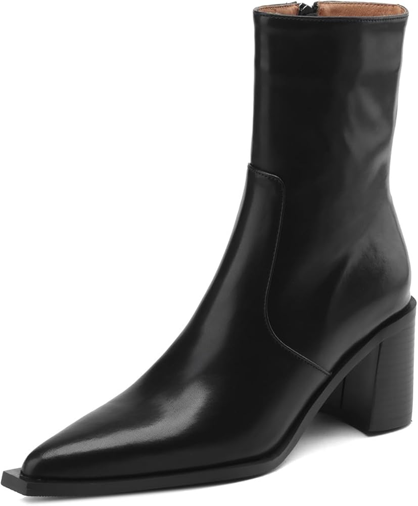 - تم تصميم أحذية الكاحل من الجلد الطبيعي، وكعب سميك، ومقدمة مدببة وسحاب لمواكبة صيحات الموضة