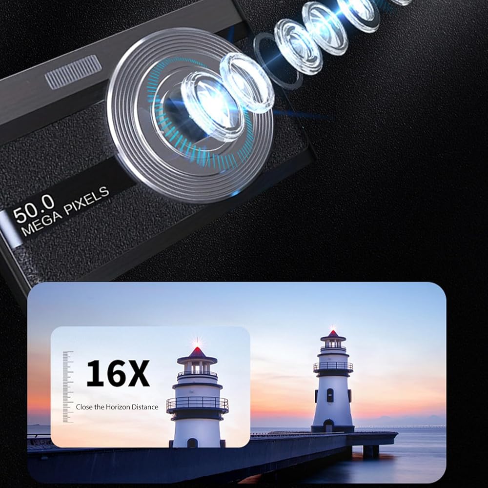 50MP Image 1080P Video: This digital camera supports up to 50MP image and 1080P video recording. Featuring a 2.2 inch screen, it is convenient for viewing your photos and videos, making it suitable for novice photography enthusiasts.