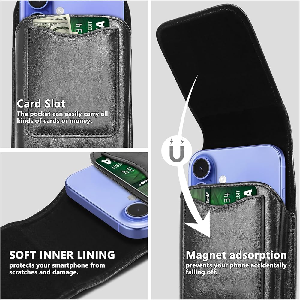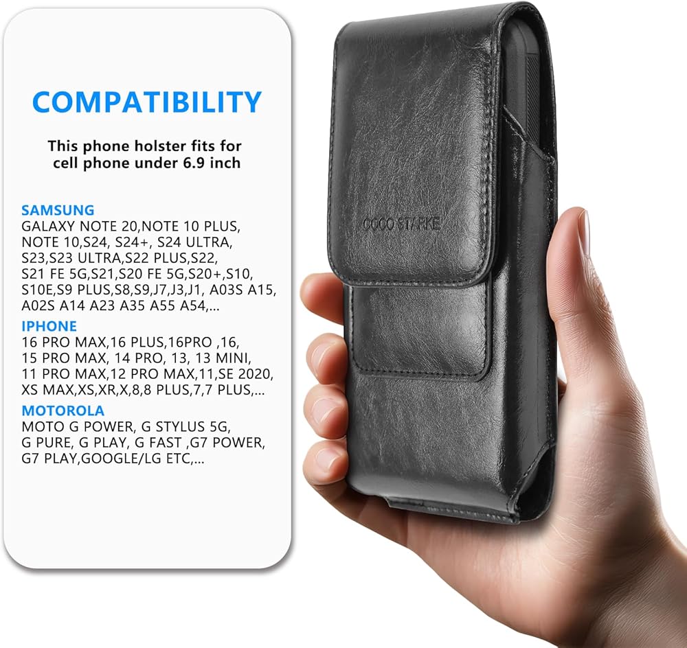Leather Phone Holster for iPhone 16 Pro Max, 15 Pro Max, 14, 13, 12, 11, X &Samsung Galaxy S24 Ultra, S23, S22, A15, A35, Cell Phone Holster Belt Holder Case with Clip