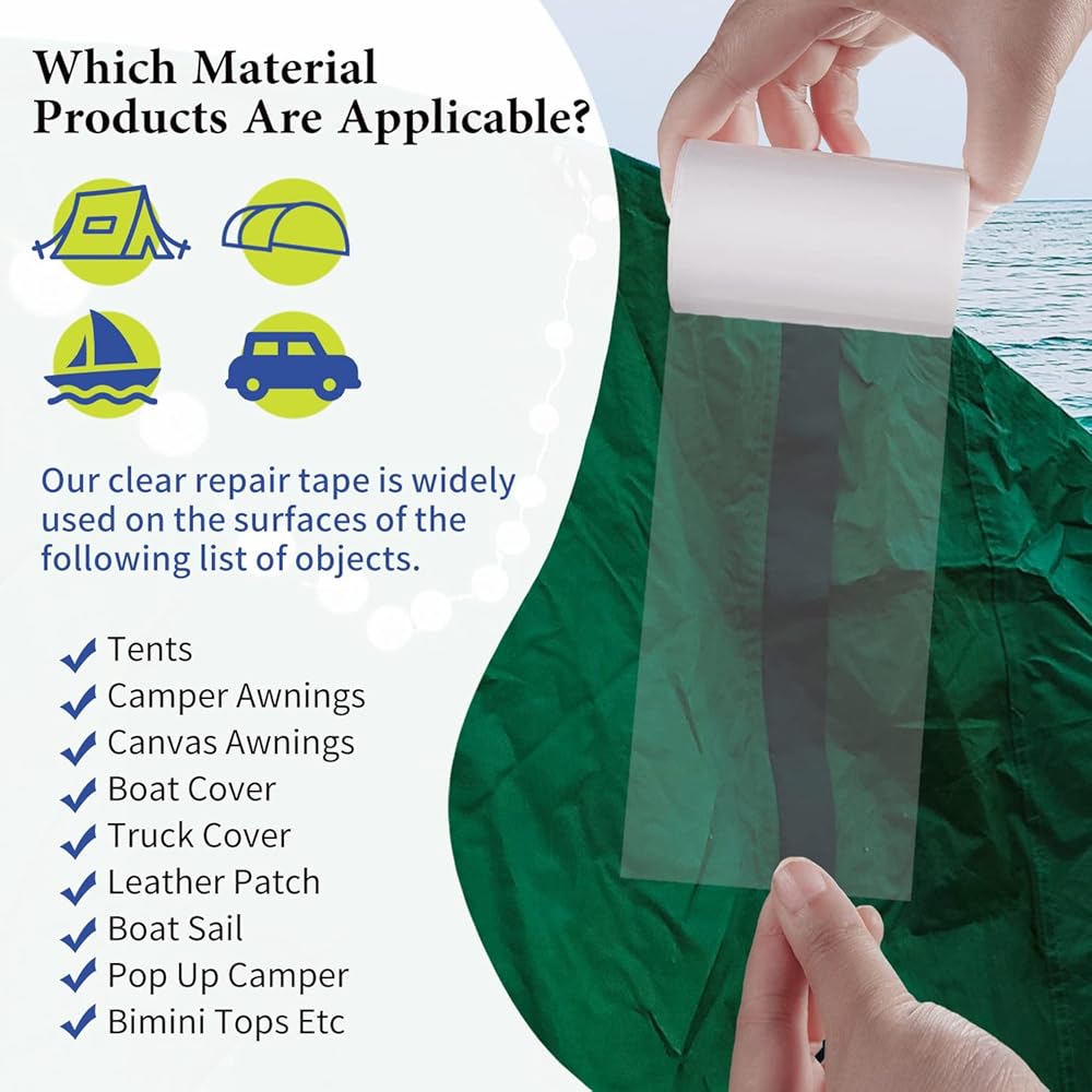 يعد شريط إصلاح مظلات RV جزءًا أساسيًا من مجموعة أدوات أي تخييم. سواء كنت بحاجة إلى إصلاح المظلة أو قماش القنب أو الخيمة، فإن هذا الشريط العنيد سيجعل المهمة سهلة. تشتمل المجموعة على مجموعة رقعة الفينيل المطاطية، ويمكنك استخدامها على أي سطح، بفضل خصائص الالتصاق الممتازة.