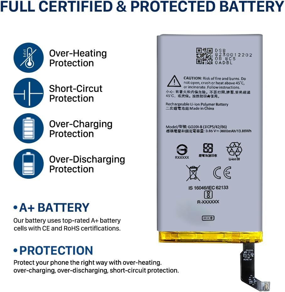 ✅[بطارية عالية الجودة] تستخدم بطارية Google Pixel 4 المطورة خلايا بطارية مصنفة من الدرجة A+ مع شهادة ILAC ISO 17025 وUL 2054. ستوفر لك بطاريتنا أكثر من 800 دورة شحن مع شحن عالي السرعة وفعال. حافظ على هاتفك ليوم من الحيوية.