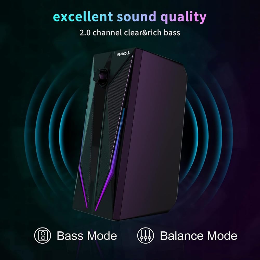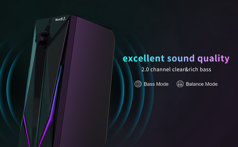 【Full-Range Stereo Sound Quality】Equipped with advanced sound drivers and a full-range 2.0 channel reinforced stereo core, this computer speakers provides the perfect atmosphere for your entertainment activities such as watching movies, gaming, and listening to music. This gaming speakers achieves excellent highs and powerful lows for an immersive audio experience
