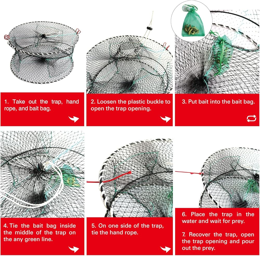 Netting:The fishing trap is made of multiple strands of polyethylene woven material, which has better durability and improves the service life of the trap.
