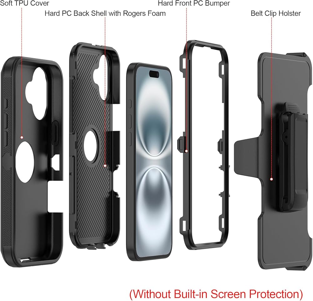 محتويات المنتج: تتضمن العبوة 2 × واقيات شاشة PET، 1 × جراب iPhone 16 plus 6.7 بوصة عالي التحمل ومقاوم للصدمات، 1 × حافظة بمشبك حزام دوار 360 درجة. فريق الخدمة المهنية والدعم الفني جاهزان على مدار 24 ساعة. مرحبا بكم في الاتصال بنا للحصول على أي سؤال