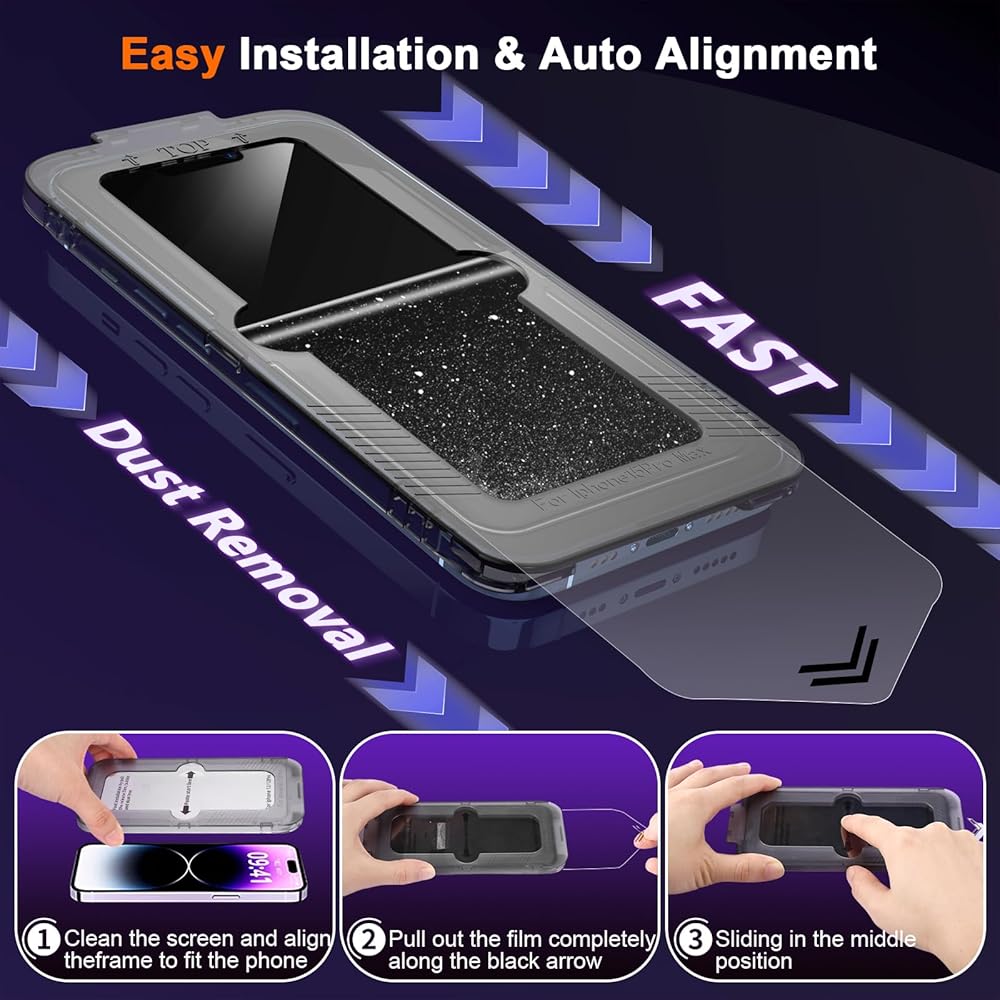 التوافق: واقي الشاشة الزجاجي المقوى المكون من قطعتين متوافق فقط مع iPhone 16 Pro Max، 6.9 بوصة. ليس لأي نماذج أخرى