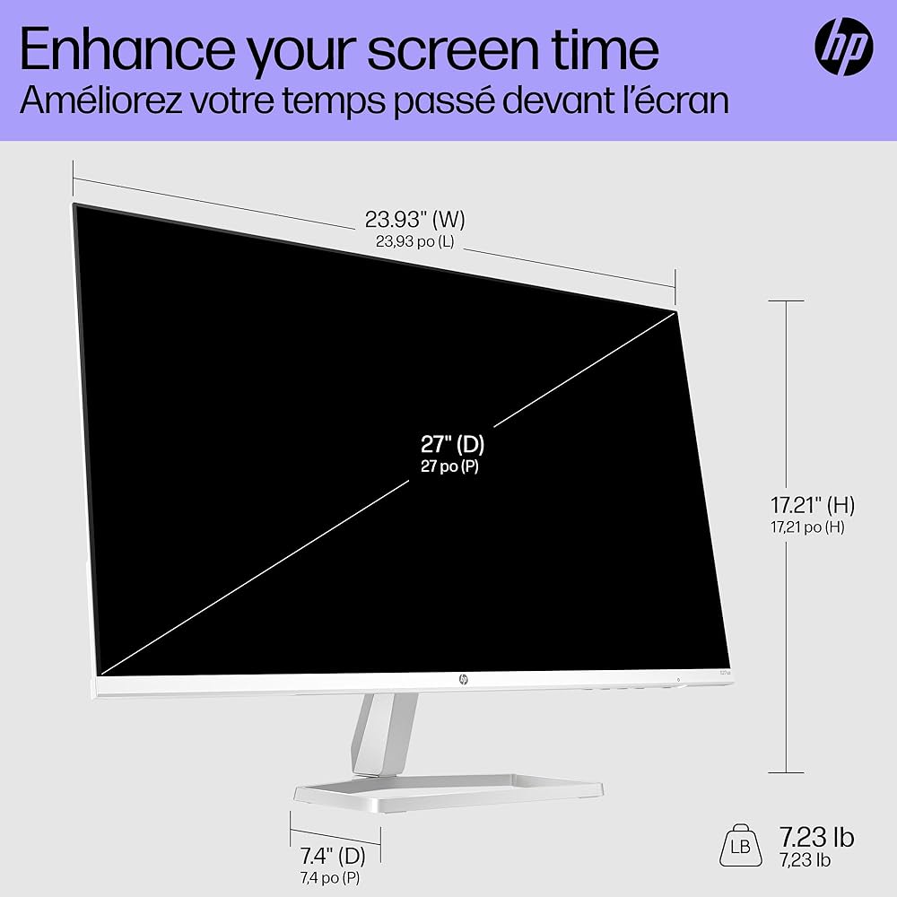 𝗦𝘁𝘂𝗻𝗻𝗶𝗻𝗴 𝗙𝗛𝗗 𝗥𝗲𝘀𝗼𝗹𝘂𝘁𝗶𝗼𝗻: The HP Series 5 27-inch FHD Monitor delivers sharp visuals and crystal-clear images with its 1920 x 1080 Full HD resolution, making it perfect for both work and entertainment. Whether you're setting up a dual monitor configuration or need a vertical monitor for multitasking, this desktop monitor excels in performance. Its crisp display enhances your monitor gaming experience, and the large computer screen is ideal for detailed tasks or immersive visuals, making it a versatile addition to any setup.
