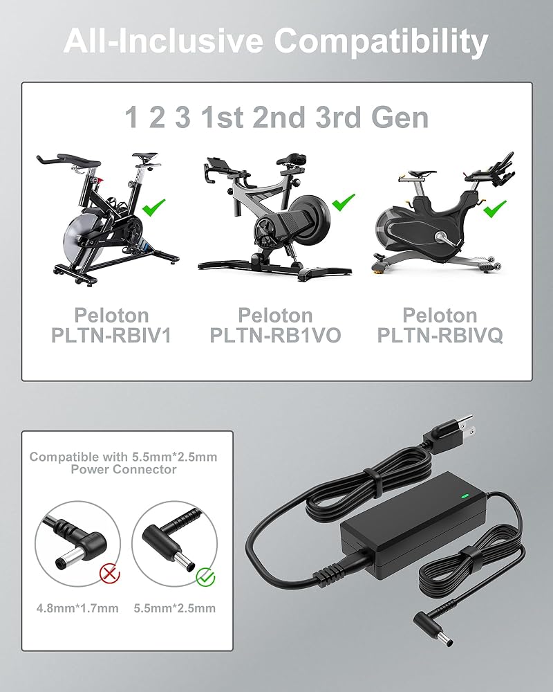 Compatible:WUKUR 12V 5A Power Cord Compatible with Peloton Exercise Bike Power Cord for Model:PLTN-RB1VO PLTN-RB1V1 PLTN-RB1VQ GEN 1 2 3 I II III,1st 2nd 3rd Generation Exercise Bike ATS050T-P/A121 ATS050T-PA121 ATS050TP/A121 ATS050TPA121 ATS050T-P121 ATS050TP121 (NOT for Bike Plus)