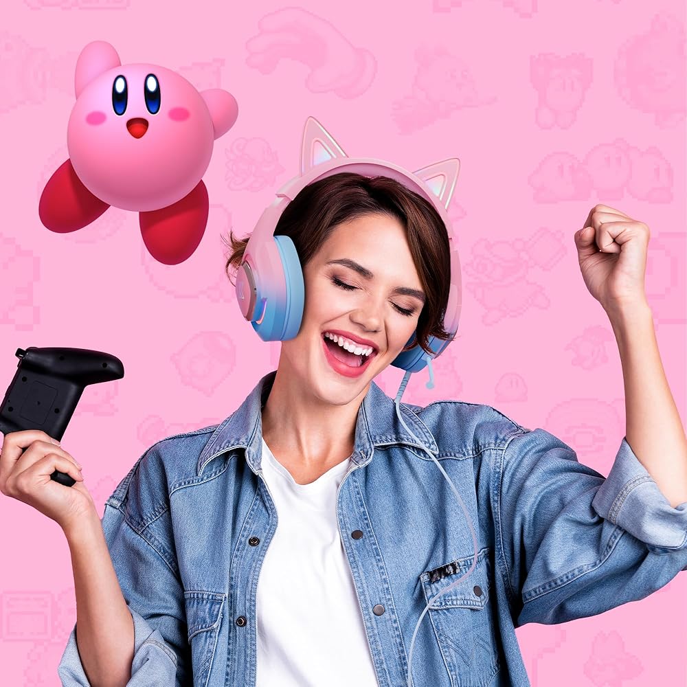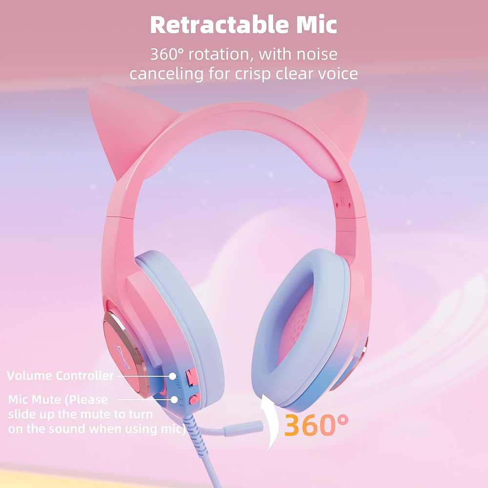 【تصميم جميل للقطط】تتميز سماعة الألعاب اللطيفة ذات أذن القطة بتصميم متدرج وردي وأزرق. يؤدي ارتداء سماعة الألعاب كيتي آر جي بي إلى تعزيز تجربة الألعاب الغامرة مع إضافة لمسة رائعة