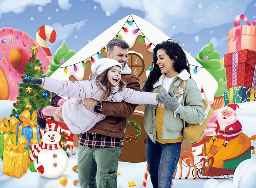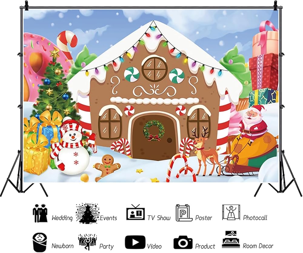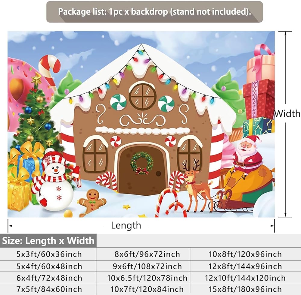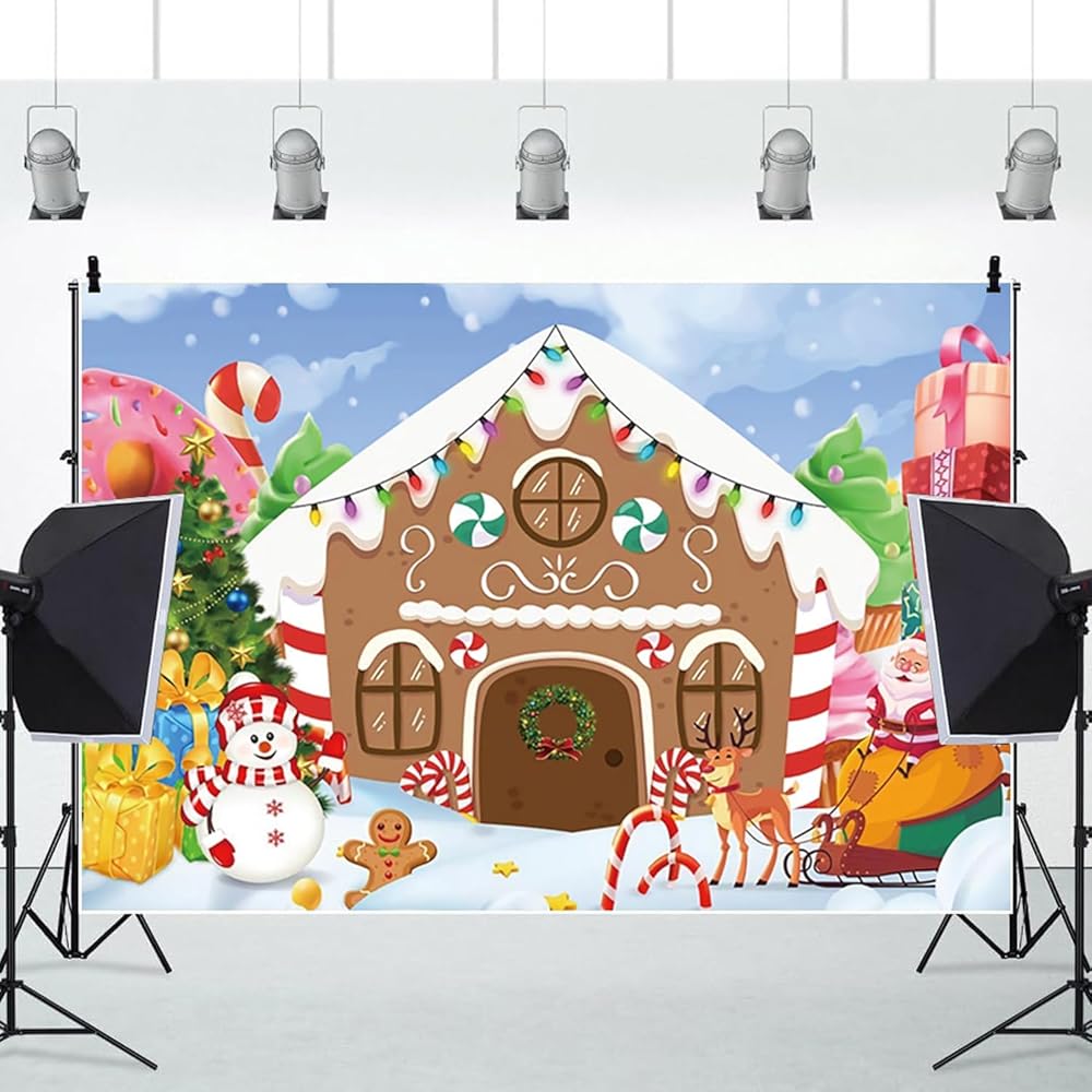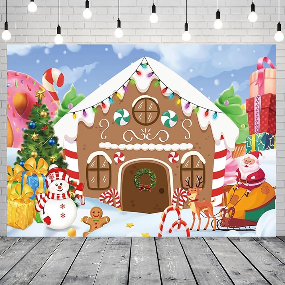 Christmas Backdrop Winter Gingerbread House Xmas Tree Snowman Gifts Background New Year Photography Banner for Birthday Christmas Party Decorations Supplies Photo Photobooth Props 5x3ft