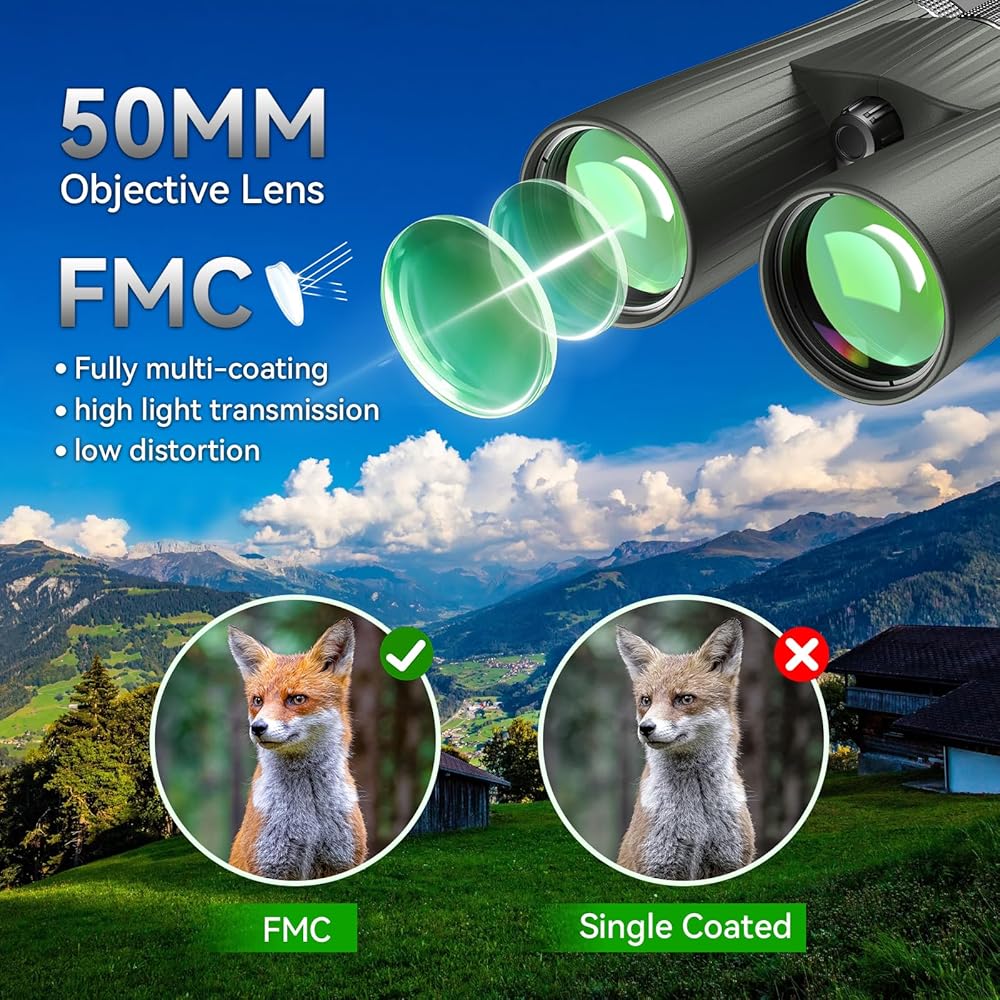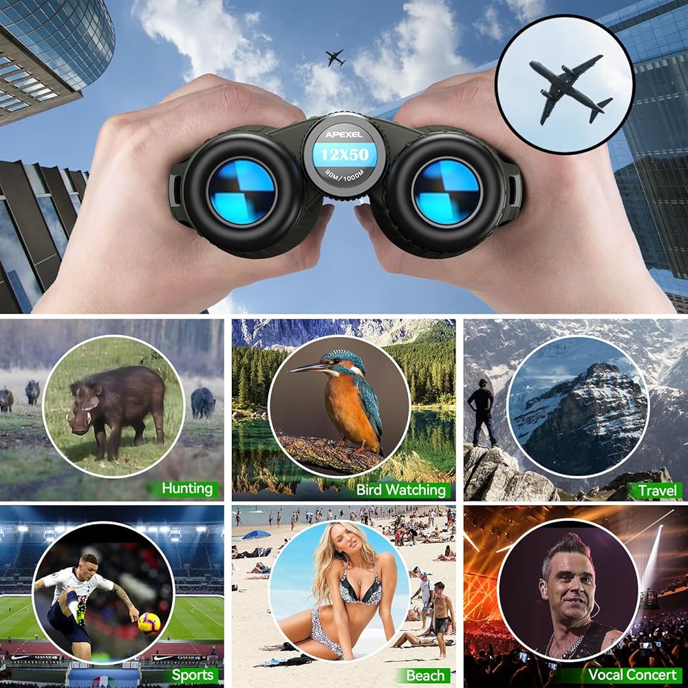 【مناظير فاخرة 12X50】 مناظير APEXEL تتميز بمنشور BAK4 وطلاء متعدد الطبقات FMC، وتوفر صورًا واضحة وحيوية وتعكس بدقة الألوان الطبيعية للبيئة المحيطة بك. مع العدسات القوية المضادة للتشوه عالية الوضوح 12X، يمكنك تجربة جمال الأماكن الخارجية الرائعة كما لم يحدث من قبل.