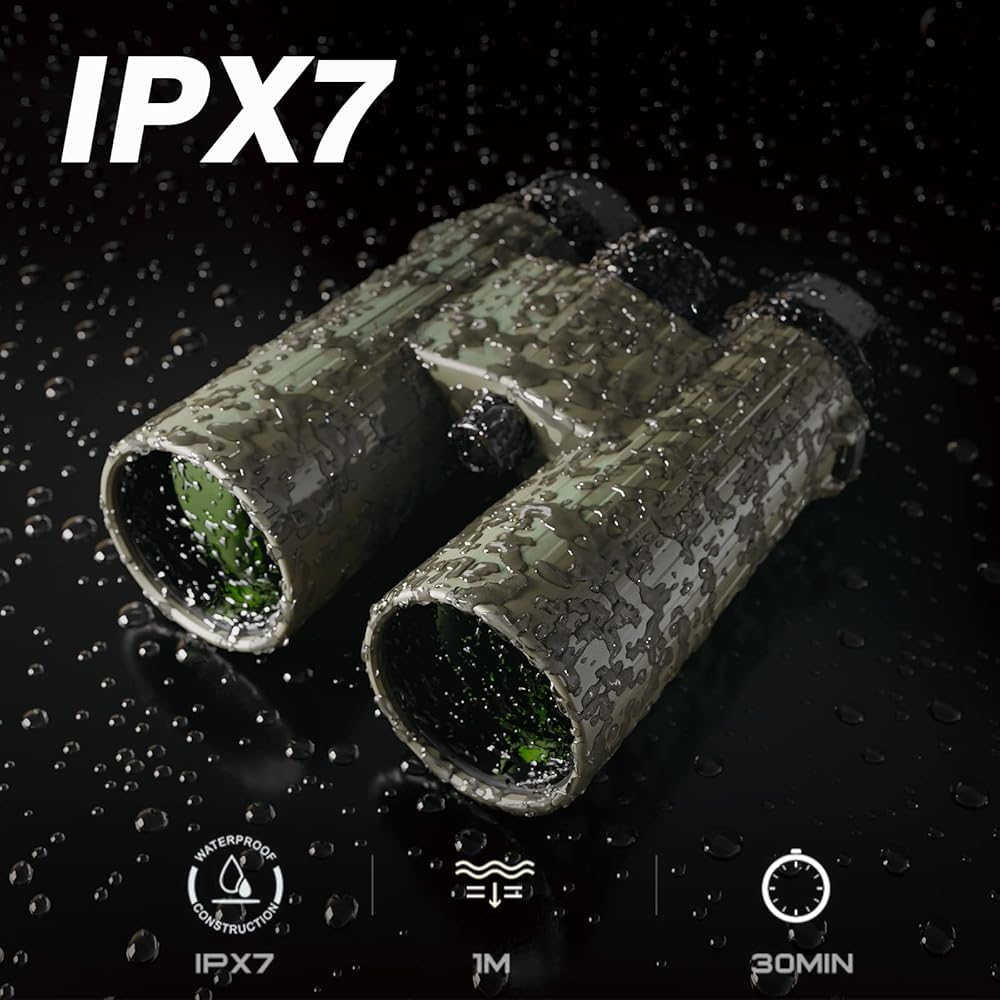 【تصميم مريح】لقد صممنا مناظير الصيد الخاصة بنا مع وضع راحتك في الاعتبار أيضًا. بفضل الجزء الخارجي المطاطي المقاوم للانزلاق والمقاوم للعرق، يمكنك الحفاظ على قبضتك حتى في الظروف الرطبة أو الزلقة. تم تصنيع مناظير مراقبة الطيور الخاصة بنا بجسم ألومنيوم متين، بينما تضمن العملية المملوءة بالنيتروجين الحصول على تصنيف IPX7 المقاوم للماء والضباب. ستتمكن من الاستمتاع بالهواء الطلق الرائع، مهما كانت حالة الطقس.