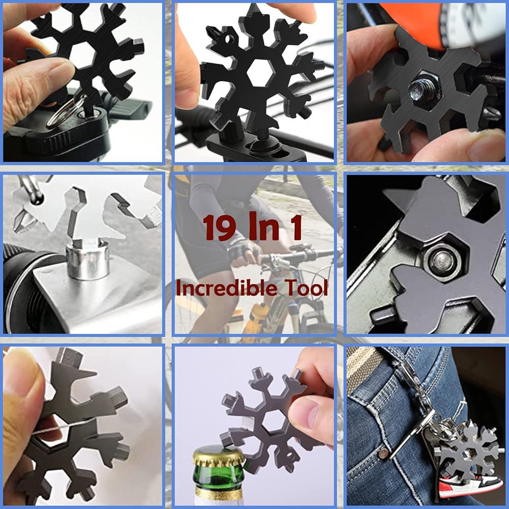 أداة ندفة الثلج المتعددة، أداة متعددة من الفولاذ المقاوم للصدأ 18 في 1، مجموعة مفك براغي فيليبس مسطحة مدمجة/مجموعة فتاحة زجاجات، هدايا للرجال، أدوات رائعة للرجال، صغيرة متينة ومحمولة.