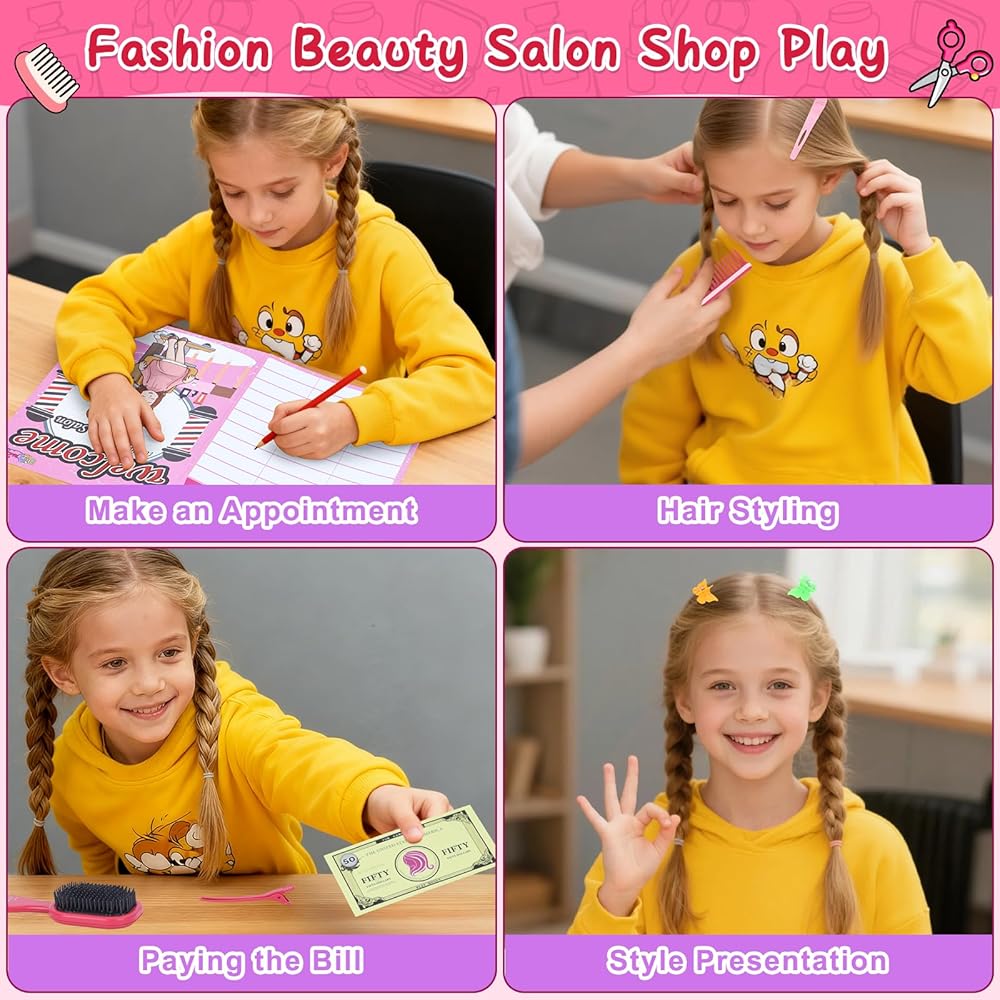 فكرة هدية رائعة - سيحب أطفالك تجميع تسريحات الشعر الأنيقة لأنفسهم والأشقاء والأصدقاء والعائلة. رائعة للعب التظاهري بالأناقة والأناقة، ولعب صالونات التجميل، فكرة هدية لأعياد الميلاد، والعطلات، وأزياء الهالوين للأطفال، والكريسماس. ساعات من الترفيه!