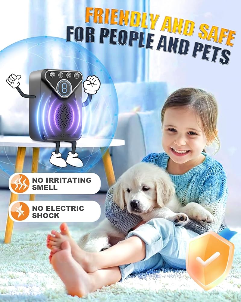 • Friendly to Both Humans & Dog: The anti barking device is friendly and safe for both humans and dogs, and will not cause disturbance or harm to humans and dogs. Because dogs are sensitive to ultrasonic waves, when dogs hear the anti barking device's ultrasonic waves, they will stop making noise and calm down