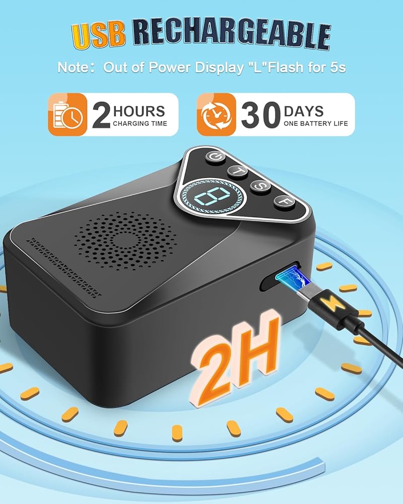 Rechargeable: Bid farewell to the inconvenience of battery replacements. Our devices feature a swift 5-hour recharge time, ensuring an impressive 30 days of continuous operation. Say goodbye to the hassle of constantly changing batteries and embrace uninterrupted peace of mind.