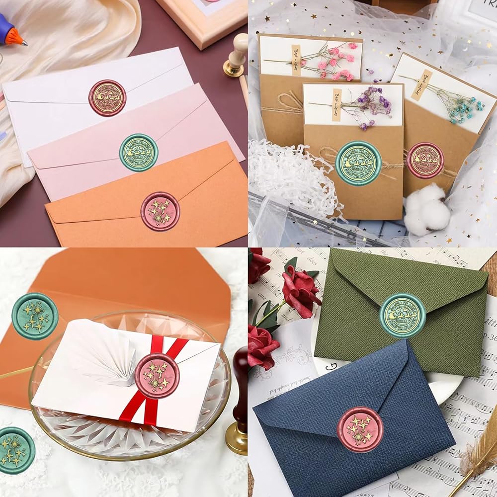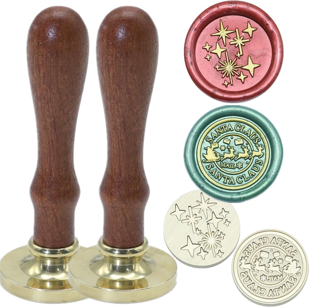 Santa Claus Wax Seal Stamp, Christmas Elk Wax Seal Stamp Set Removable Brass Head Sealing Stamp, Wax Seal Kit Great for Decorating Christmas Party Invitations. Wax Stamp Size: Seal Head Diameter: 25mm/0.98''; Total Lenght of The Stamp: 90mm/3.54''. Christmas Wax Seal Stamp Materials: Made of wooden handle and brass seal head, easy to use and clear, the stamp head is smooth and shiny, non-stick. Removable Stamp Head: Removable stamp head. Easy to change and install. Widely Application: Great for decorating envelopes, post cards, Christmas invitations, snail mails, wine packaging, gift wrapping, tea or cosmetics packaging and DIY project. You can use it make wax seals for Christmas Day. Packing Includes: 2 pcs wax seal stamp(not including sealing wax), unique stamp meet your christmas party, used to seal documents and private information, it can protect the private information. How to use? 1. Taking 3 or 5 wax beads into melting spoon ; 2. Heating the melting spoon with the tea candle; 3. Pour the melted wax onto the item to be sealed; 4. Stamp your seal on the melting wax, and take the stamp seal off after the wax comes cool completely.