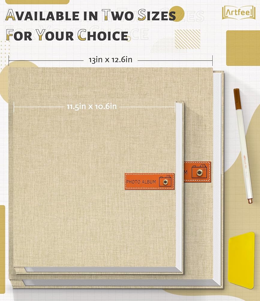 ألبوم صور ألبوم قصاصات ذاتي اللصق، كتاب صور لصور مقاس 4 × 6،5 × 7،8 × 10، ألبوم غلاف من الكتان DIY لعائلة زفاف الطفل، مع قلم معدني ومكشطة