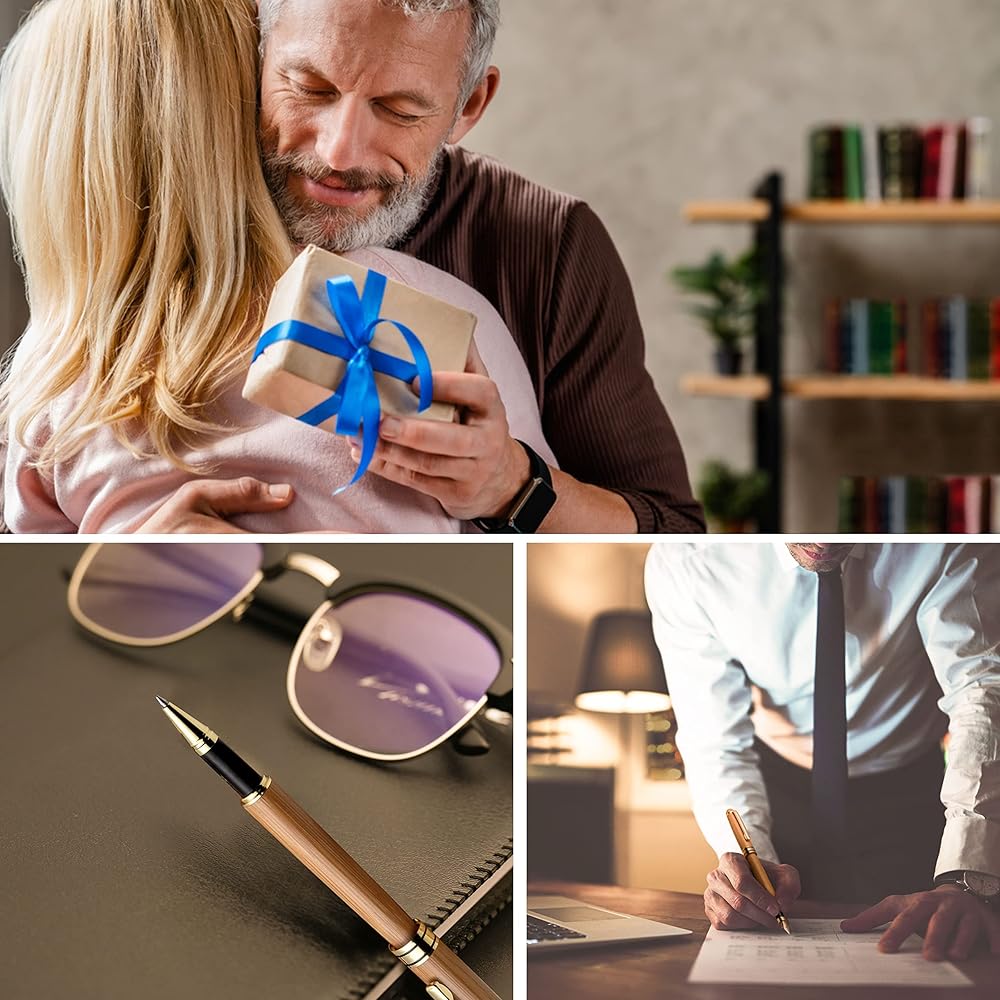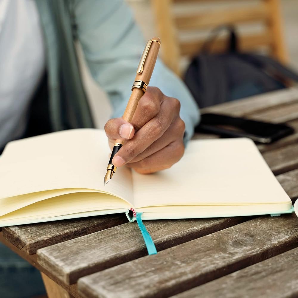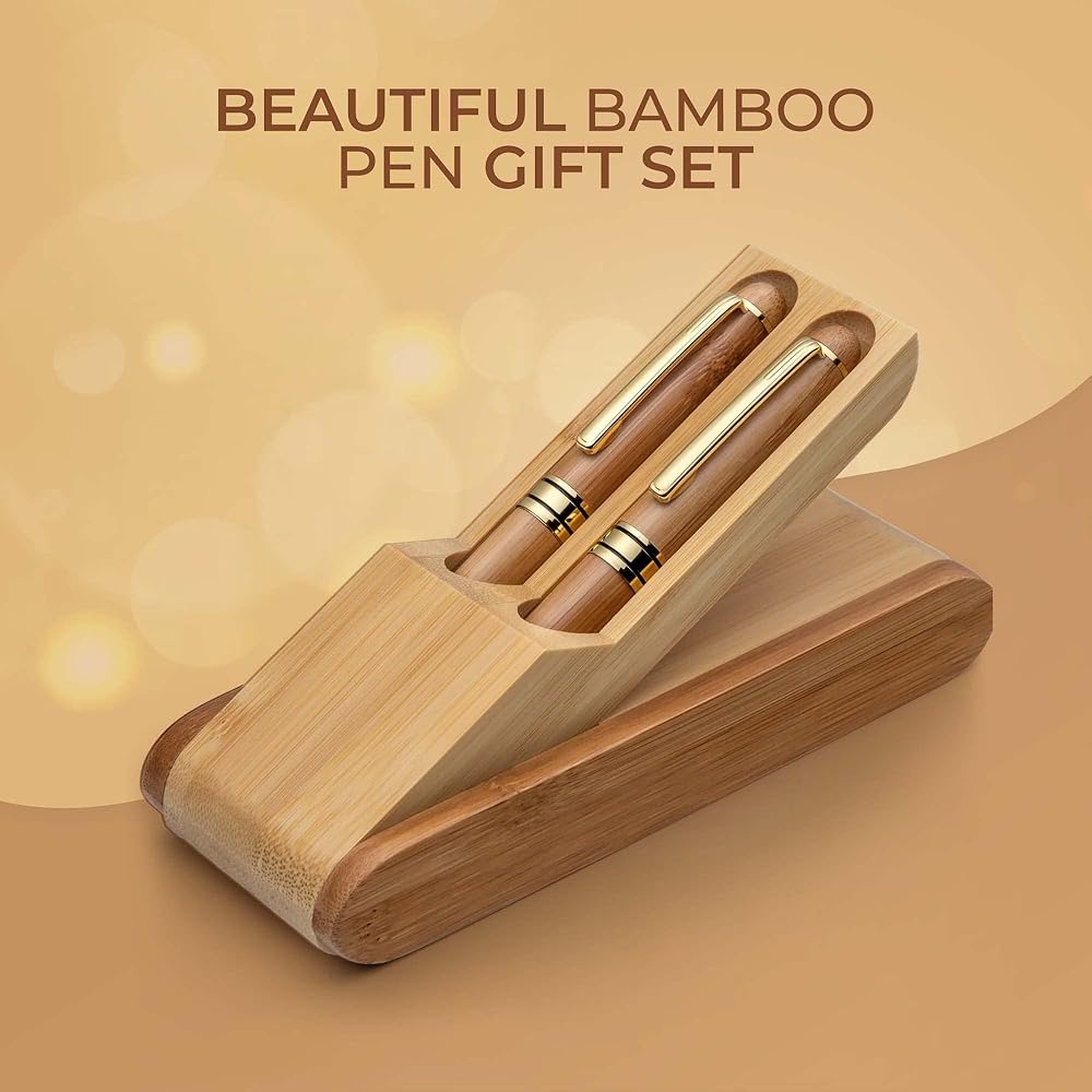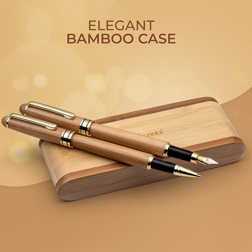 مجموعة أقلام خشبية ZenZoi - قلم حبر من الخيزران مع سن رفيع وقلم كرة دوارة. كتابة سلسة، قابلة لإعادة الملء، عتيقة، مصنوعة، قلم يوميات. مجموعة هدايا القلم الفاخرة للرجال والنساء، محول الحبر.