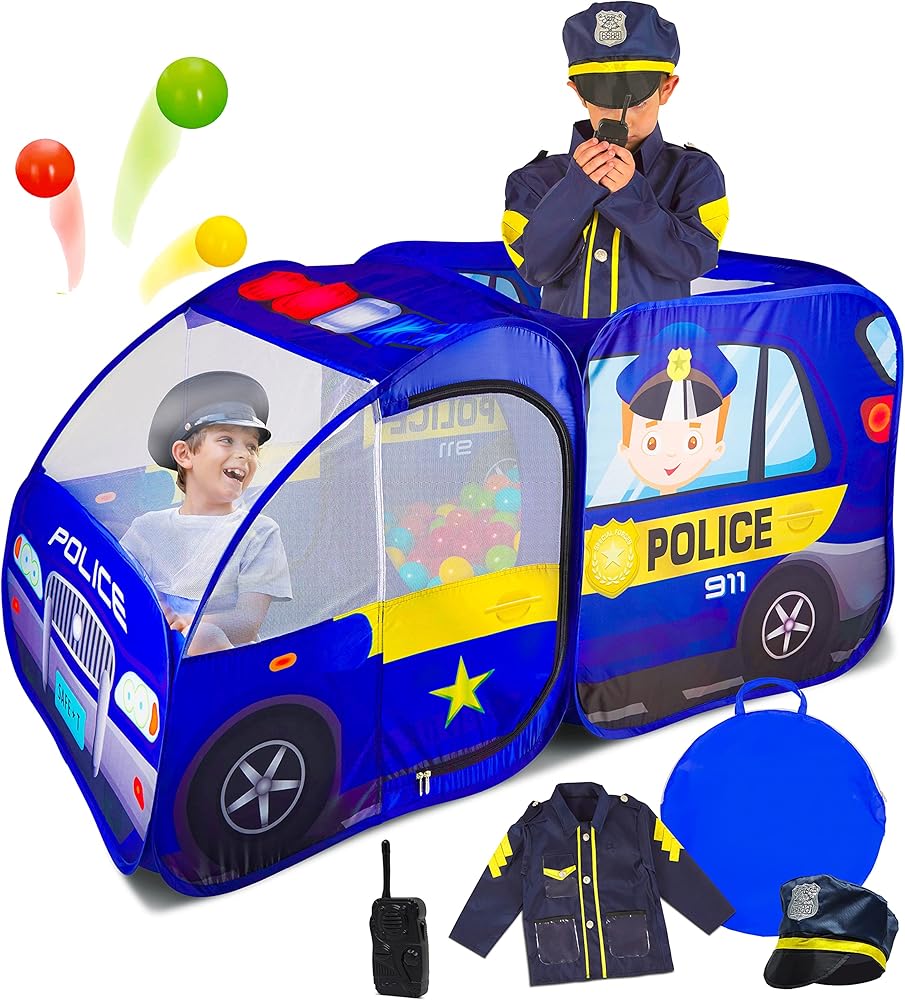 هدية مثالية للأطفال - يحب الأطفال هذه الدراما البوليسية، لذا تصبح خيمة اللعب المنبثقة لسيارة الشرطة وزي ضابط الشرطة هدية مثيرة ومثيرة للاهتمام تبرز عن الباقي خلال أعياد الميلاد والعطلات والمناسبات الخاصة الأخرى. بطريقة ما، أنت تساعدهم أيضًا على الابتعاد عن الشاشات.