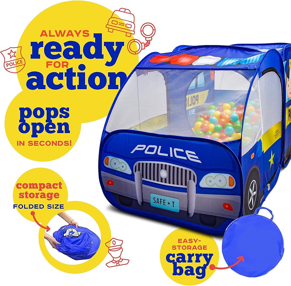 خيمة سيارة شرطة للأطفال ذات قيمة فائقة وحفرة كرات للأطفال - حيث يمكن للعديد من الأطفال الاجتماع معًا والتظاهر بلعب سيناريوهات خيالية في خيمة لعب الأطفال وهم الأخيار والأشرار. تسلسل حركة المطاردة ولعبة سيارة الطوارئ يبقي الجميع مستمتعين لساعات.