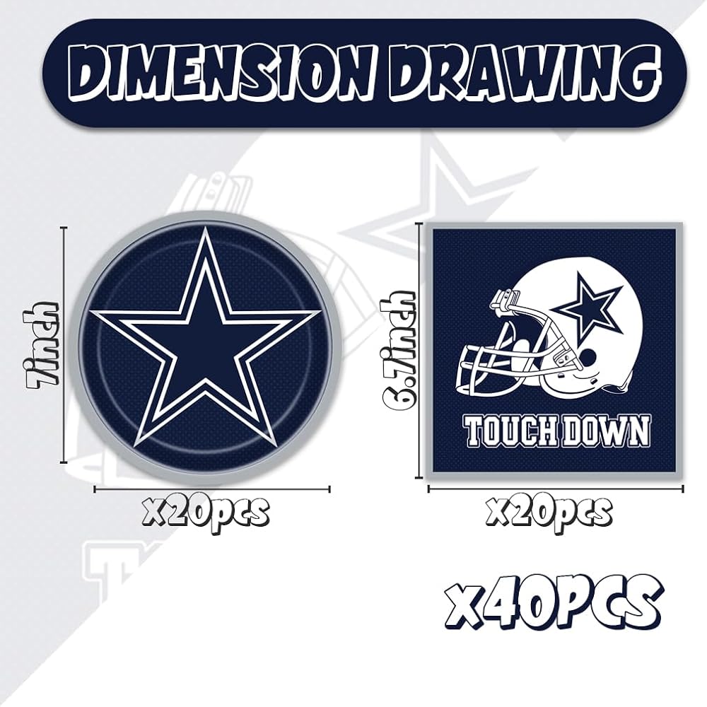 40Packs Football birthday Party Supplies include 20 plates, 20 napkins for the Football party decoration