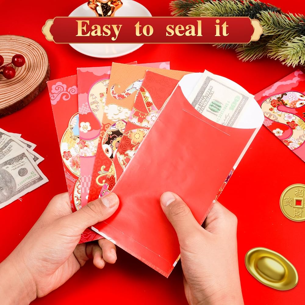 • خامة عالية الجودة: مغلفات النقود للنقود مصنوعة من ورق عالي الجودة، والأظرف الحمراء مريحة عند اللمس، والرقائق الذهبية على الورق لامعة. الحجم الصحيح (3.5 × 6.4 بوصة / 9 × 16.3 سم) من الأظرف الحمراء يمكن أن يناسب النقود بسهولة.